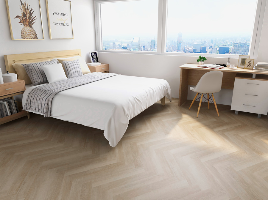 CHECK One Premium Herringbone séduit par son motif à chevrons unique et son isolation phonique intégrée. Un revêtement de sol qui convainc non seulement par son design, mais aussi par ses avantages pratiques.