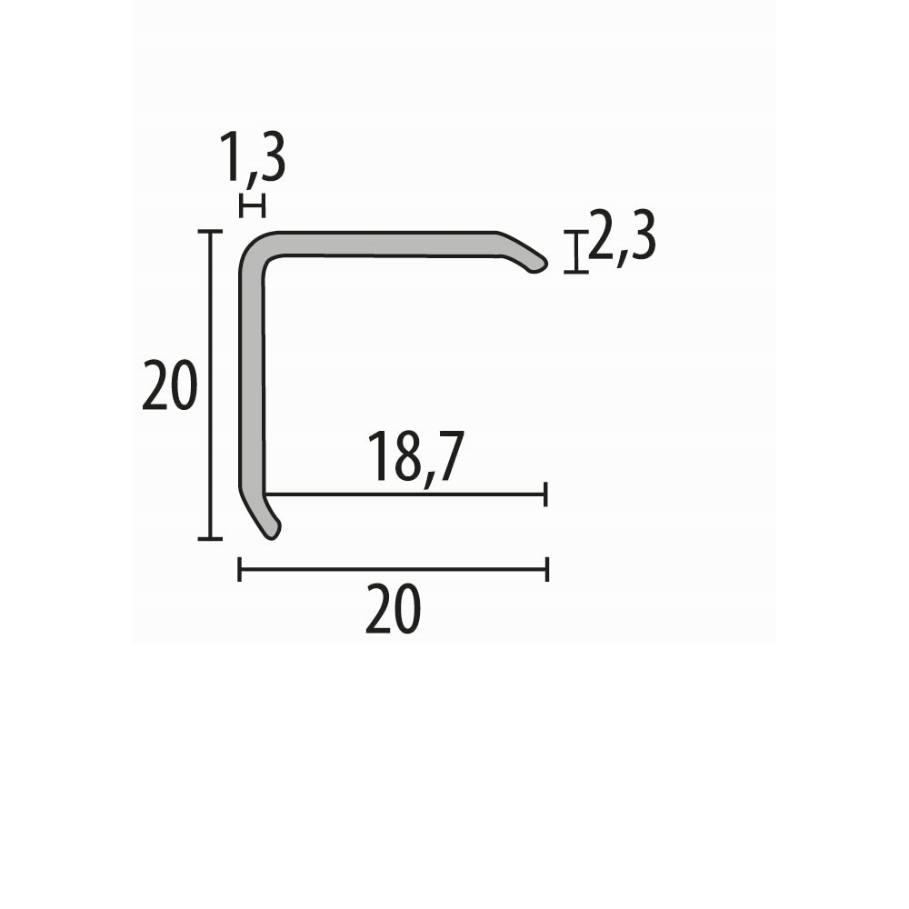 Cornière 20 x 20 x 2500 mm Aluminium Angle Lisse Non Percé Küberit