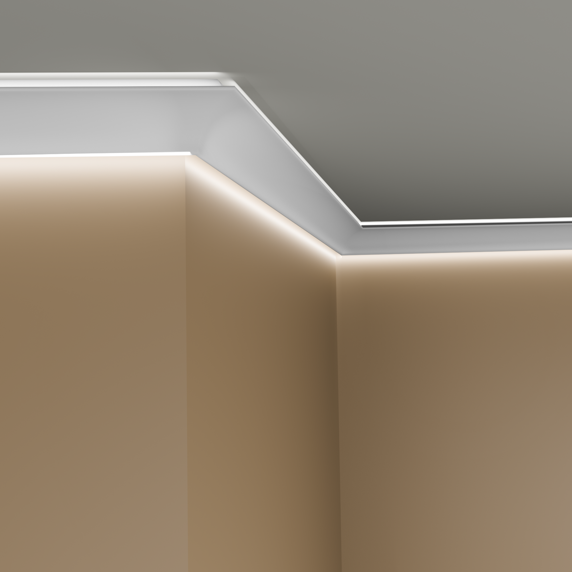 Les moulures créent une finition parfaite entre le mur et le plafond. Les moulures de plafond au design classique ou moderne confèrent à vos pièces un petit quelque chose en plus. De nombreuses moulures peuvent être combinées avec des bandes LED. Grâce à ces rampes lumineuses, vous mettez en scène chaque pièce de manière encore plus unique.