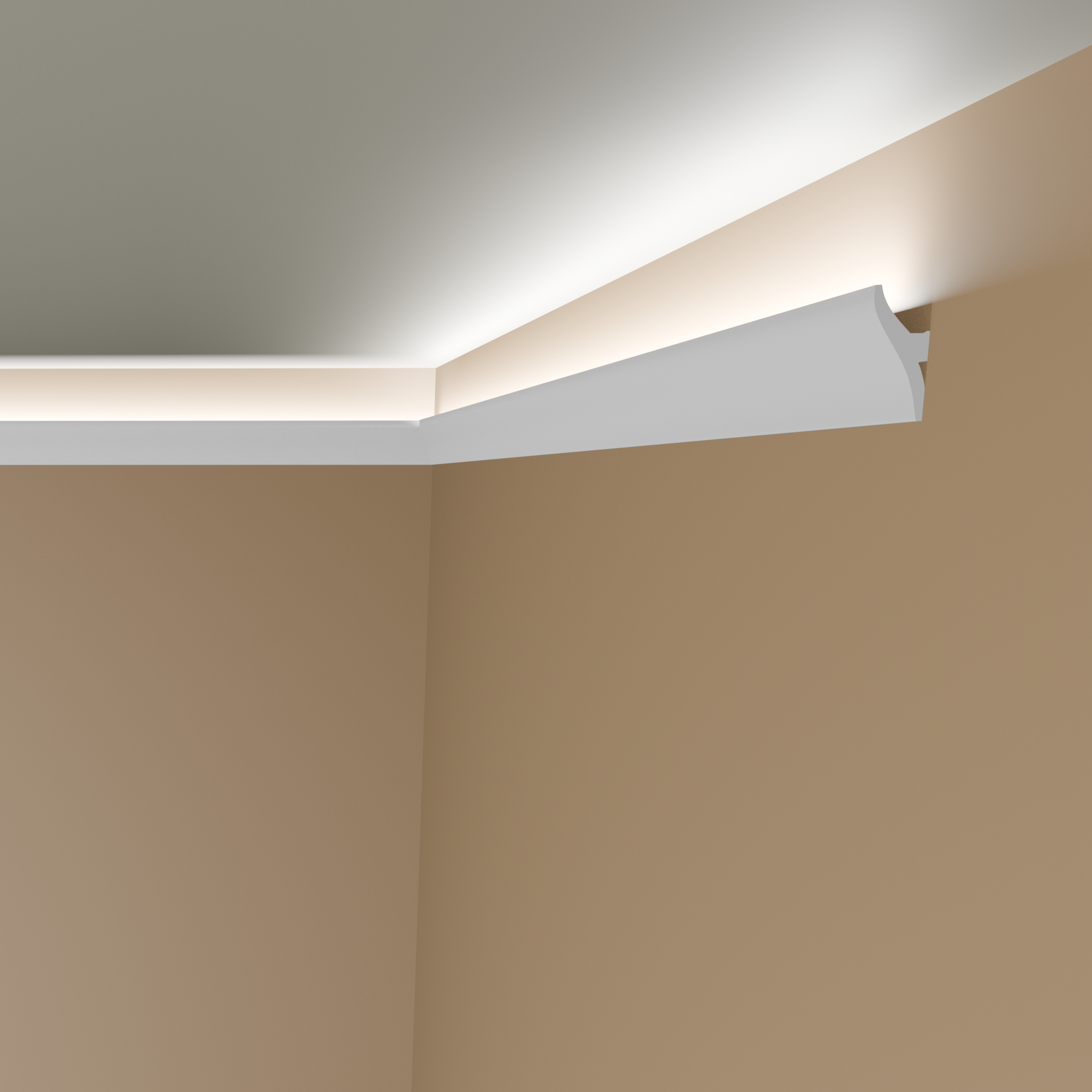 Avec nos Moulures lumineuses vous pouvez jouer avec la luminosité dans vos pièces et créer ainsi un éclairage d'ambiance. Les Moulures décoratives pour éclairage indirect LED peuvent être équipées de Rubans LED d'intensité de lumière différentes après la pose des Moulures. Selon votre choix vous pouvez ainsi obtenir un éclairage d'ambiance ou un éclairage plus intense. Profitez des avantages de la nouvelle technologie LED pour un éclairage indirect et réalisez vos idées de lumière. Ces Moulures s'adaptent à toutes les pièces de votre habitation. Créez un éclairage de style avec les Moulures pour éclairage indirect. L'éclairage d'ambiance n'est plus seulement réservé aux restaurants et aux hôtels.