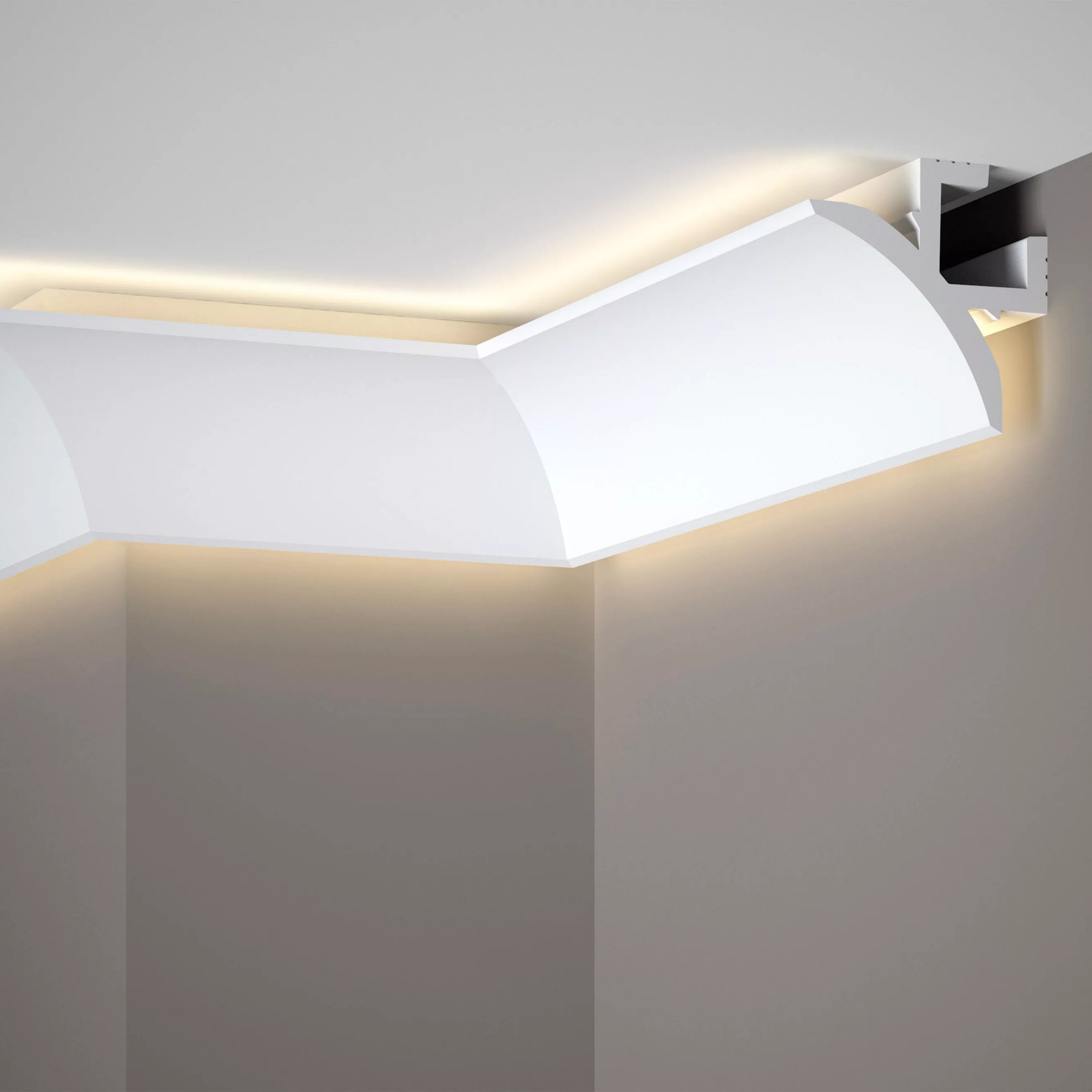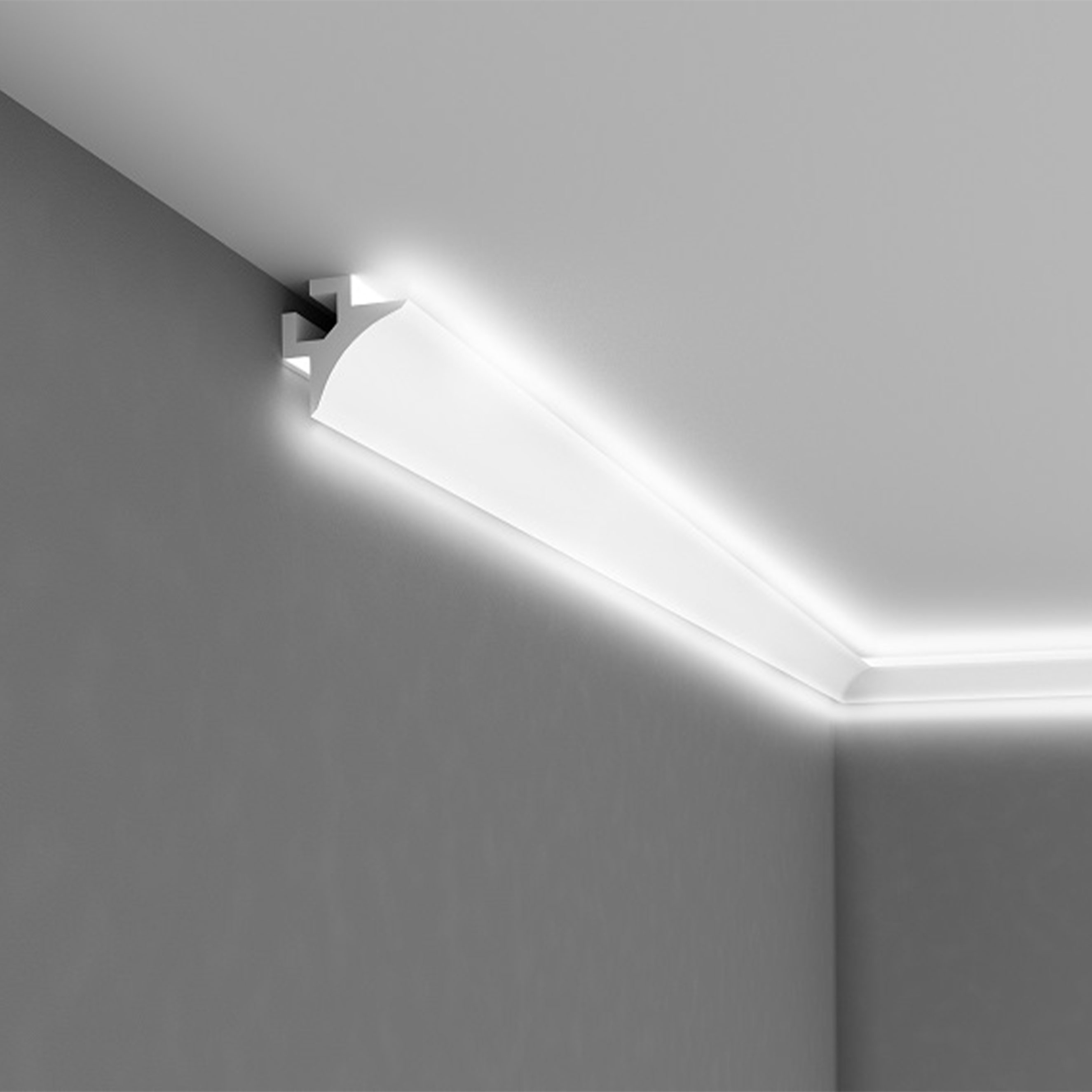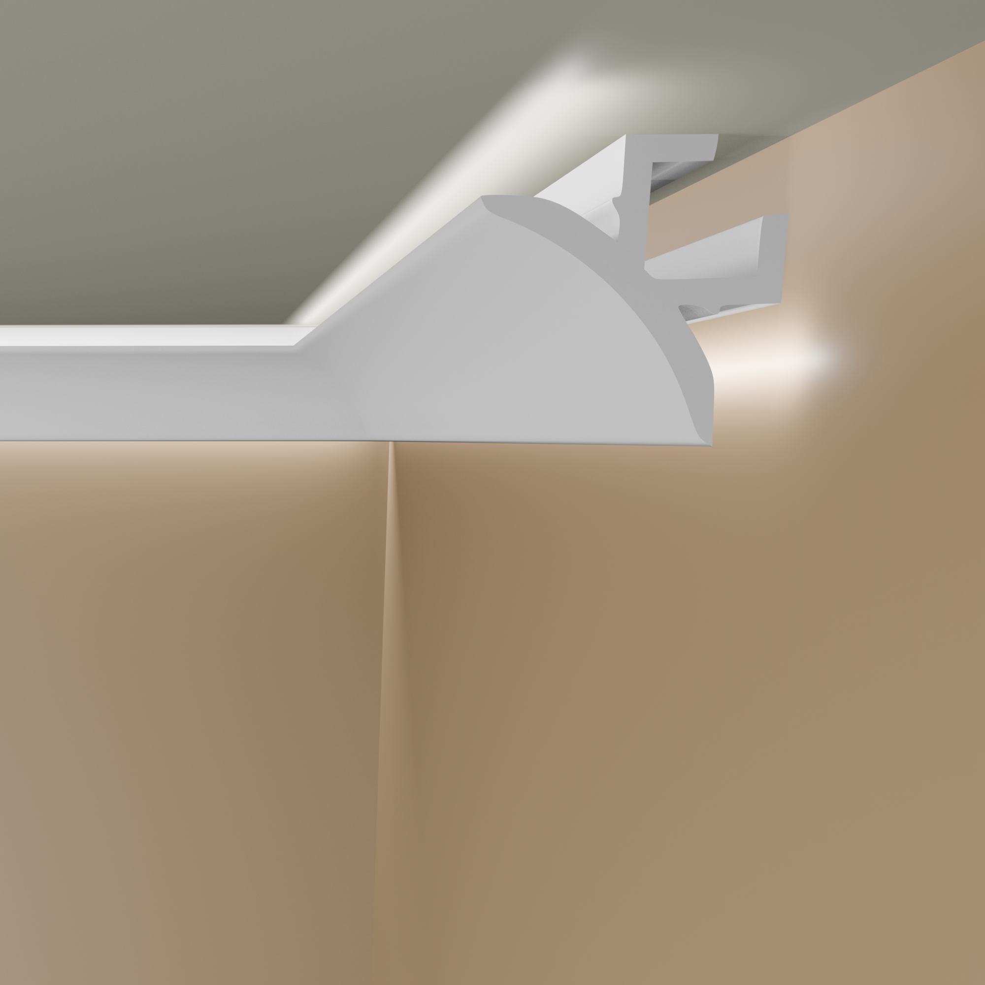 Avec nos Moulures lumineuses vous pouvez jouer avec la luminosité dans vos pièces et créer ainsi un éclairage d'ambiance. Les Moulures décoratives pour éclairage indirect LED peuvent être équipées de Rubans LED d'intensité de lumière différentes après la pose des Moulures. Selon votre choix vous pouvez ainsi obtenir un éclairage d'ambiance ou un éclairage plus intense. Profitez des avantages de la nouvelle technologie LED pour un éclairage indirect et réalisez vos idées de lumière. Ces Moulures s'adaptent à toutes les pièces de votre habitation. Créez un éclairage de style avec les Moulures pour éclairage indirect. L'éclairage d'ambiance n'est plus seulement réservé aux restaurants et aux hôtels.