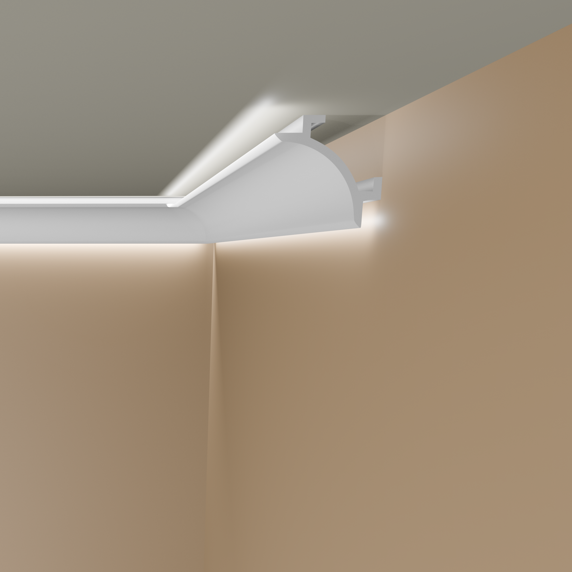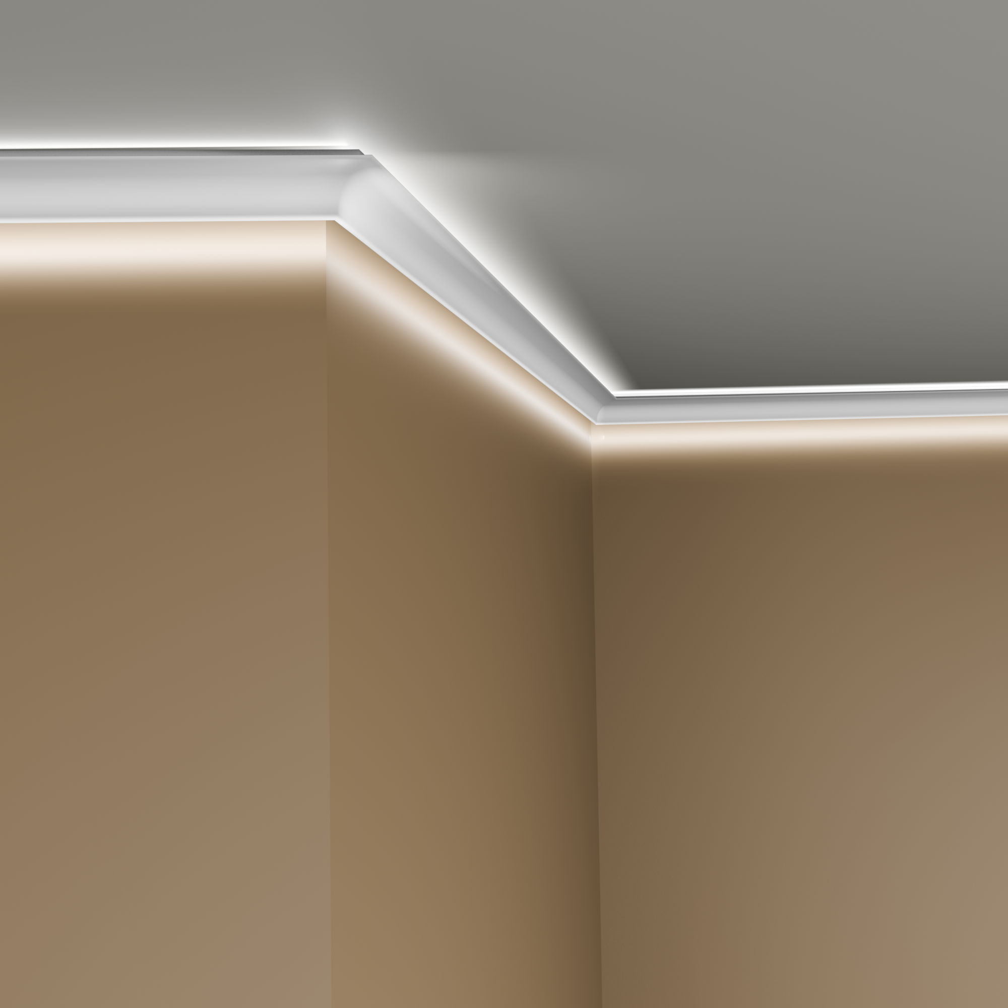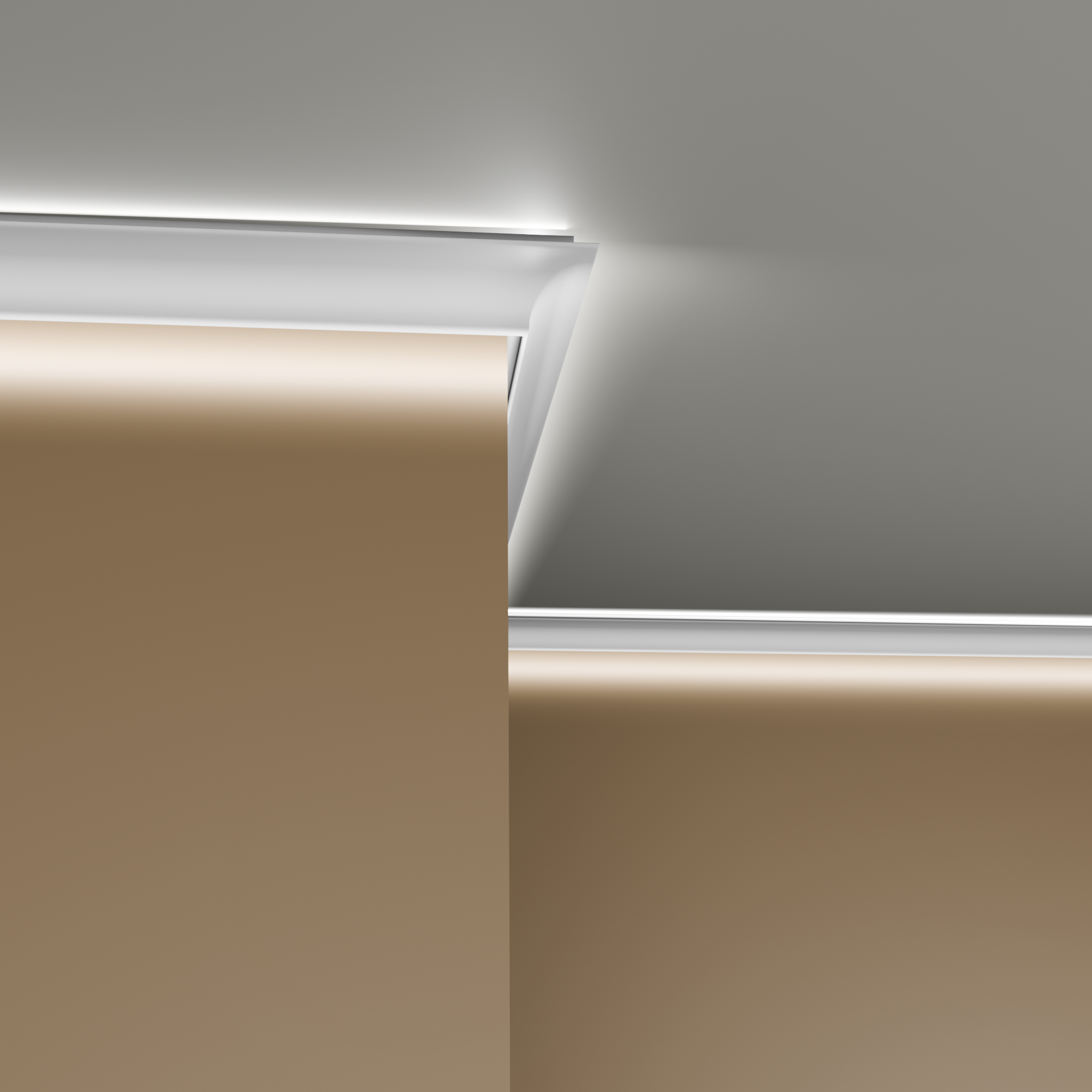 Avec nos Moulures lumineuses vous pouvez jouer avec la luminosité dans vos pièces et créer ainsi un éclairage d'ambiance. Les Moulures décoratives pour éclairage indirect LED peuvent être équipées de Rubans LED d'intensité de lumière différentes après la pose des Moulures. Selon votre choix vous pouvez ainsi obtenir un éclairage d'ambiance ou un éclairage plus intense. Profitez des avantages de la nouvelle technologie LED pour un éclairage indirect et réalisez vos idées de lumière. Ces Moulures s'adaptent à toutes les pièces de votre habitation. Créez un éclairage de style avec les Moulures pour éclairage indirect. L'éclairage d'ambiance n'est plus seulement réservé aux restaurants et aux hôtels.