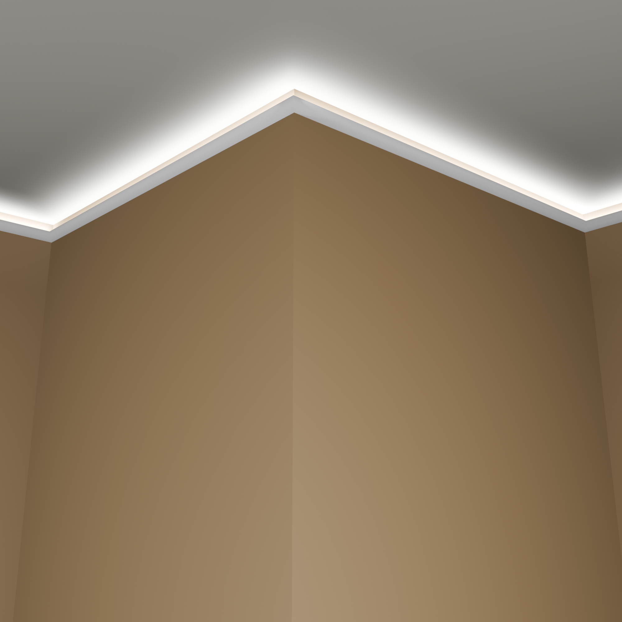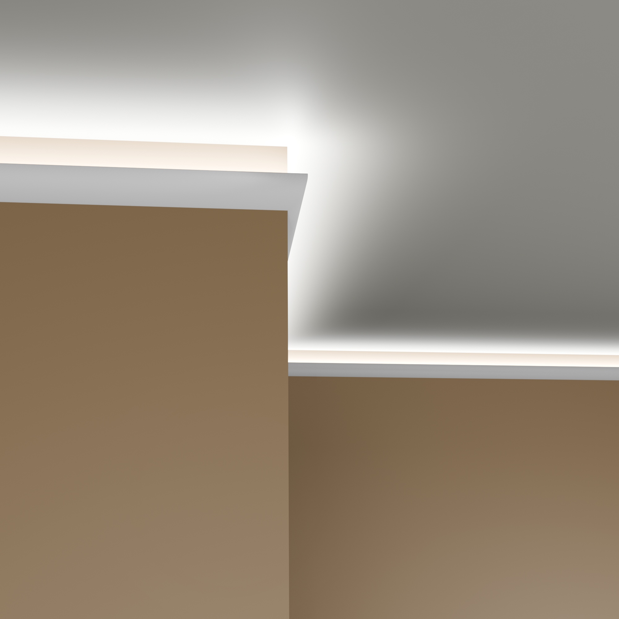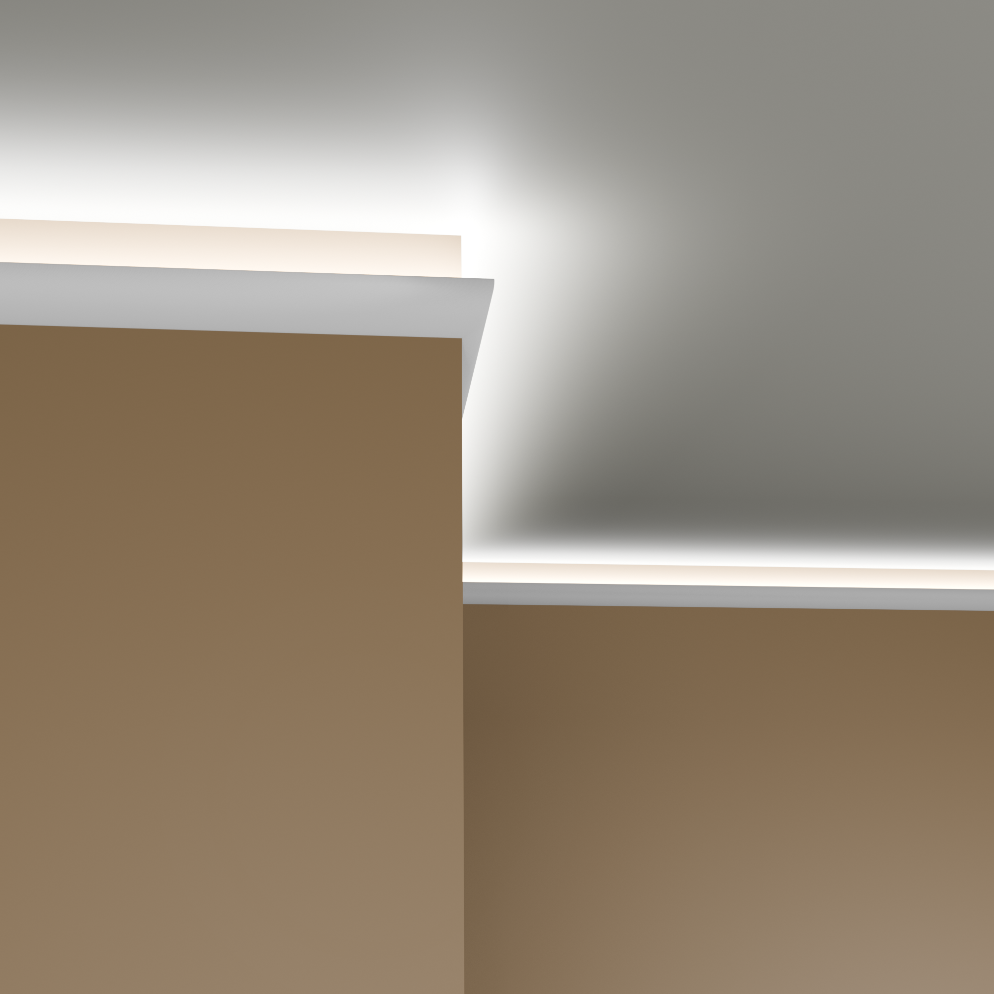 Avec nos Moulures lumineuses vous pouvez jouer avec la luminosité dans vos pièces et créer ainsi un éclairage d'ambiance. Les Moulures décoratives pour éclairage indirect LED peuvent être équipées de Rubans LED d'intensité de lumière différentes après la pose des Moulures. Selon votre choix vous pouvez ainsi obtenir un éclairage d'ambiance ou un éclairage plus intense. Profitez des avantages de la nouvelle technologie LED pour un éclairage indirect et réalisez vos idées de lumière. Ces Moulures s'adaptent à toutes les pièces de votre habitation. Créez un éclairage de style avec les Moulures pour éclairage indirect. L'éclairage d'ambiance n'est plus seulement réservé aux restaurants et aux hôtels.