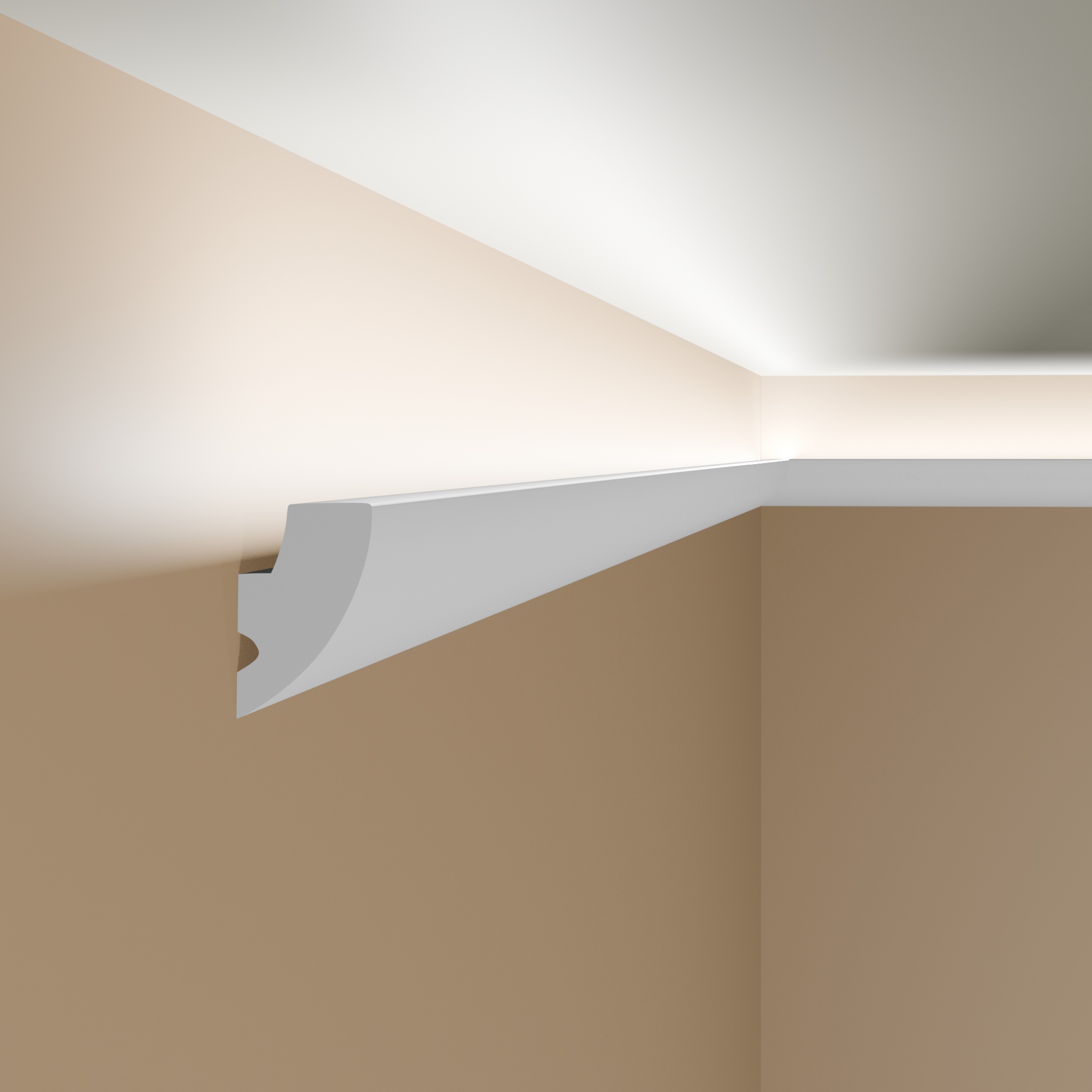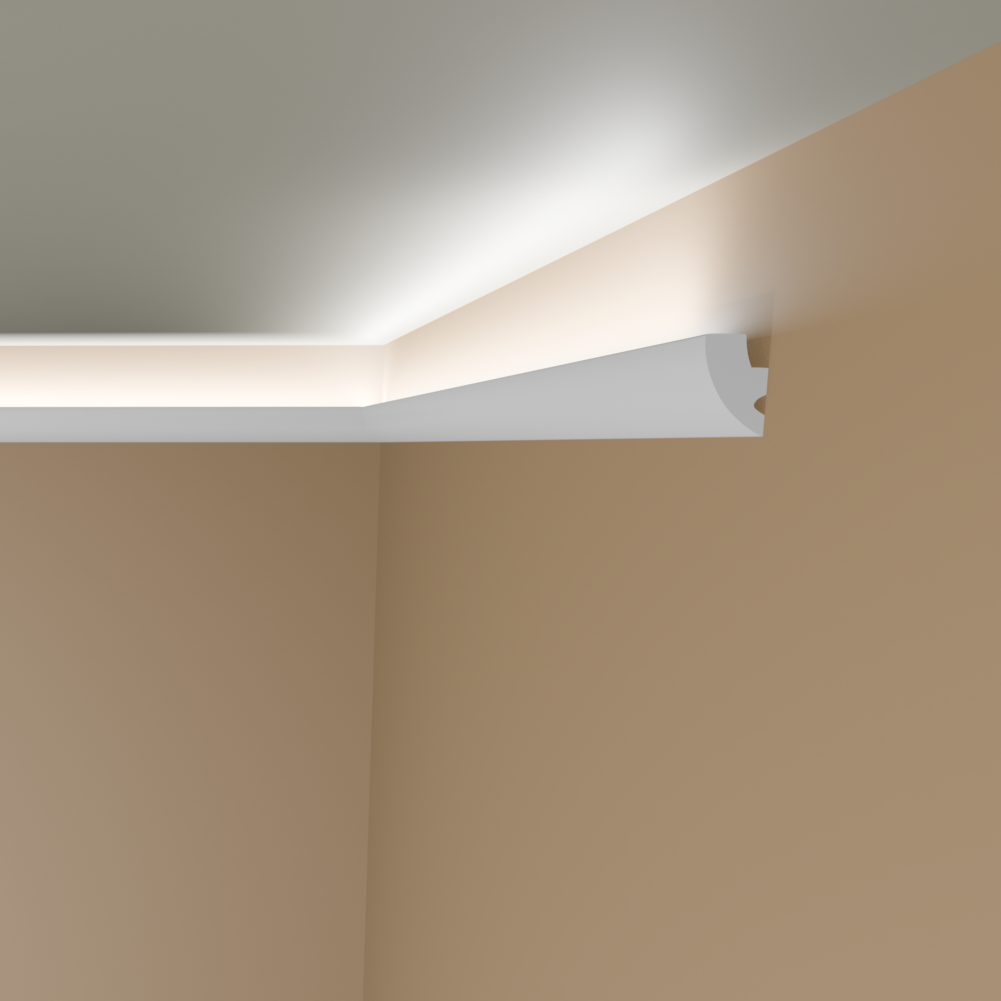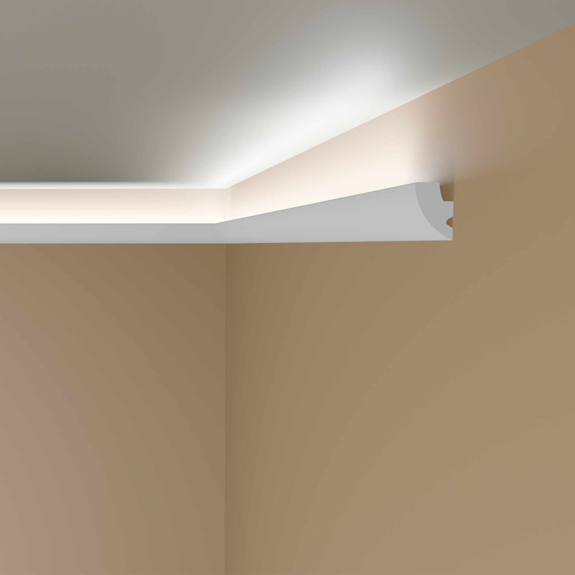 Avec nos Moulures lumineuses vous pouvez jouer avec la luminosité dans vos pièces et créer ainsi un éclairage d'ambiance. Les Moulures décoratives pour éclairage indirect LED peuvent être équipées de Rubans LED d'intensité de lumière différentes après la pose des Moulures. Selon votre choix vous pouvez ainsi obtenir un éclairage d'ambiance ou un éclairage plus intense. Profitez des avantages de la nouvelle technologie LED pour un éclairage indirect et réalisez vos idées de lumière. Ces Moulures s'adaptent à toutes les pièces de votre habitation. Créez un éclairage de style avec les Moulures pour éclairage indirect. L'éclairage d'ambiance n'est plus seulement réservé aux restaurants et aux hôtels.