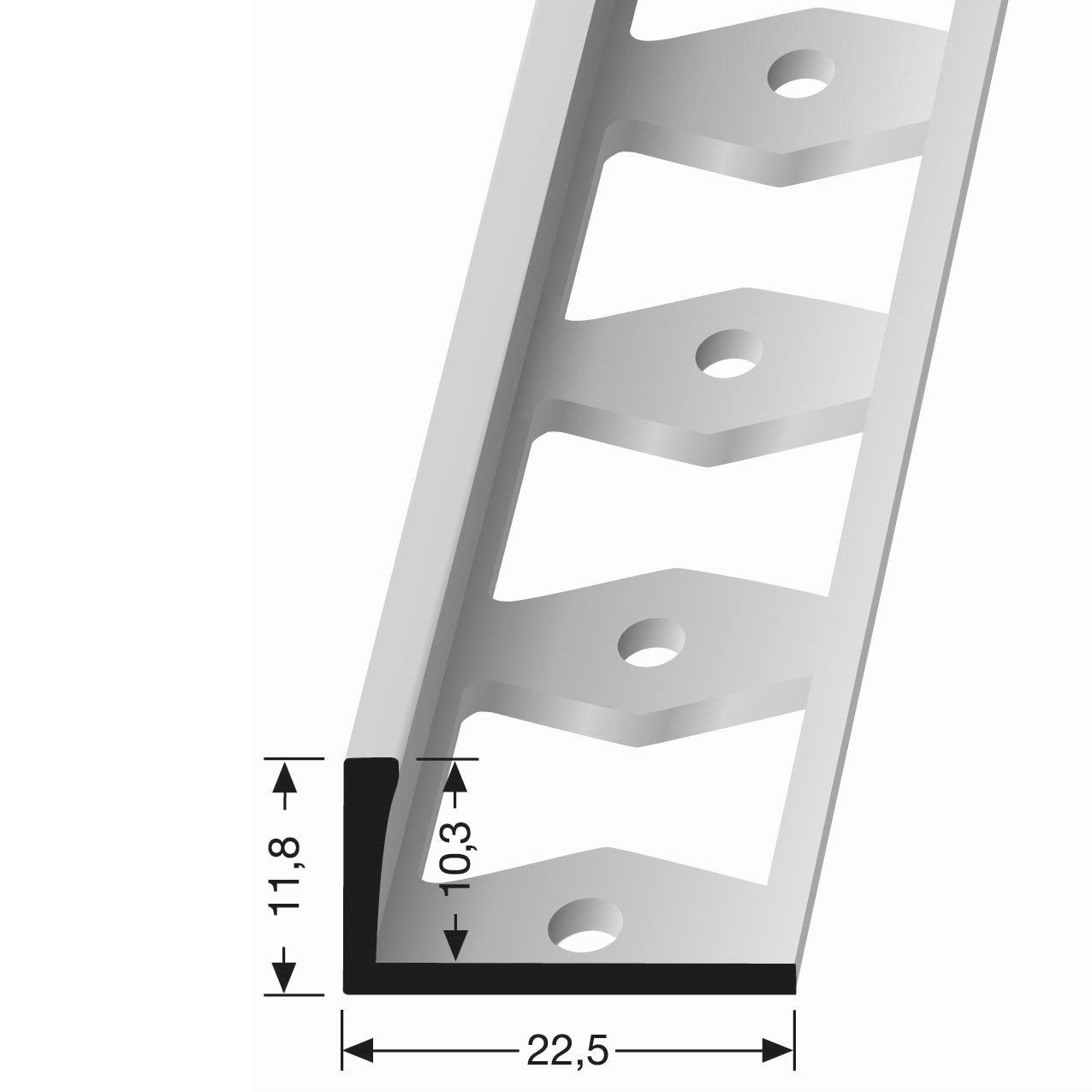 - DIMENSIONS: L'équerre de 11.8 x 22.5 x 2500 mm offre une finition soignée et s'adapte parfaitement aux différentes épaisseurs de carreaux. Elle convient au carrelage d'une épaisseur de 10.3mm.