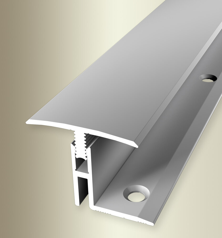 Cette barre de seuil en deux pièces, appelé Mono-Clip, est spécialement conçu pour permettre une dilatation plus importante avec un profilé étroit. Le design des profilés est très élégant avec une surface lisse et élégante. La barre de seuil est adaptée à tous les revêtements de sol durs de 7-12 mm, 12-17 mm et 17-22 mm. Dans la série Mono-Clip, il existe des profilés de rattrapage, des profilés de finition et des barres de seuil.