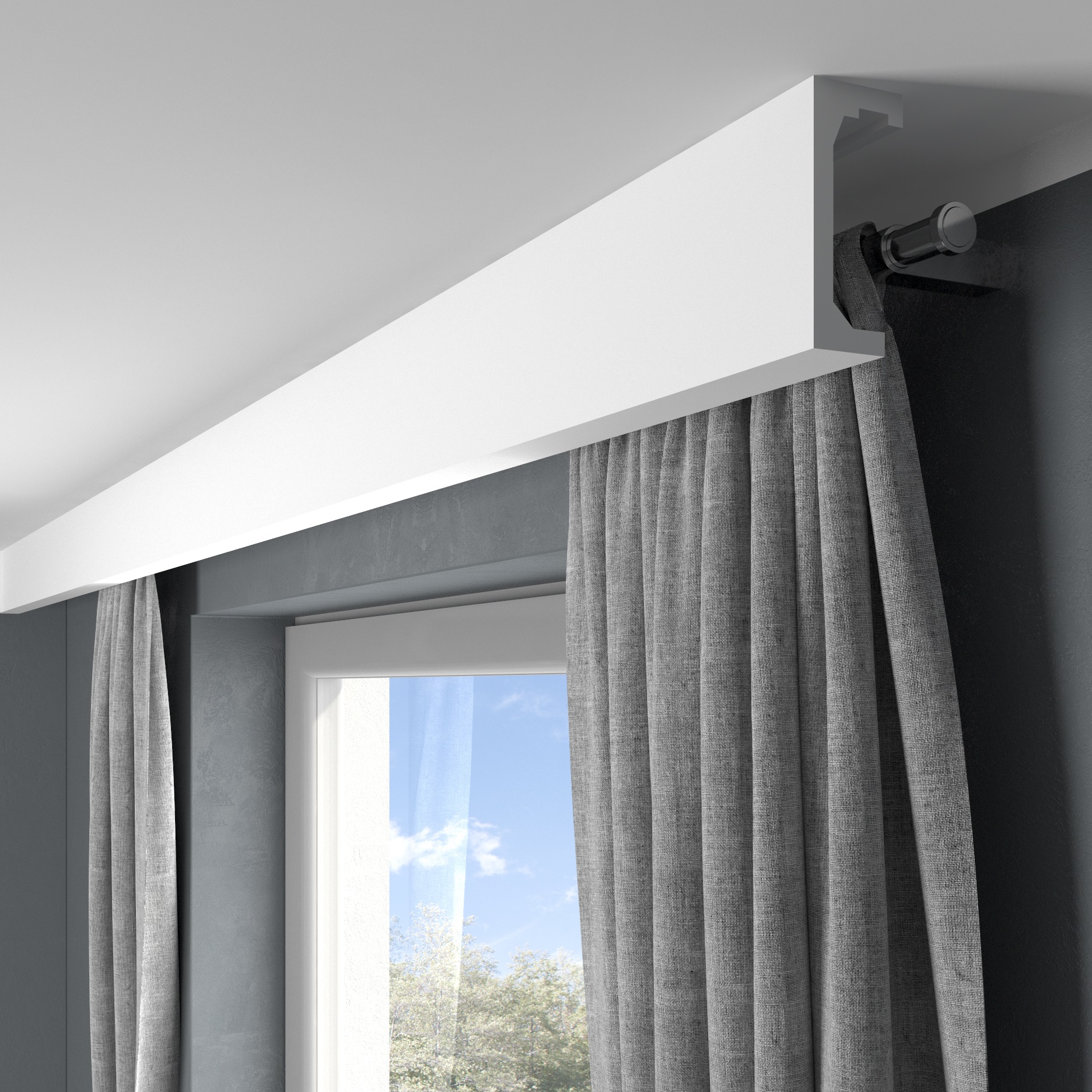 Les moulures caches rideaux offrent la solution idéale pour dissimuler élégamment les tringles à rideaux et les rails à rideaux. Les caches rideaux assurent ainsi une image harmonieuse de la pièce tout en apportant une touche visuelle.