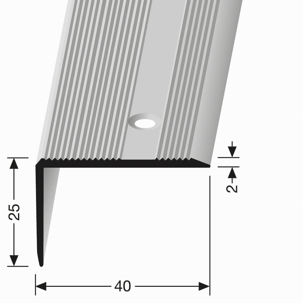Nez de marche 25 x 40 x 2500 mm Aluminium Cornière striée Küberit