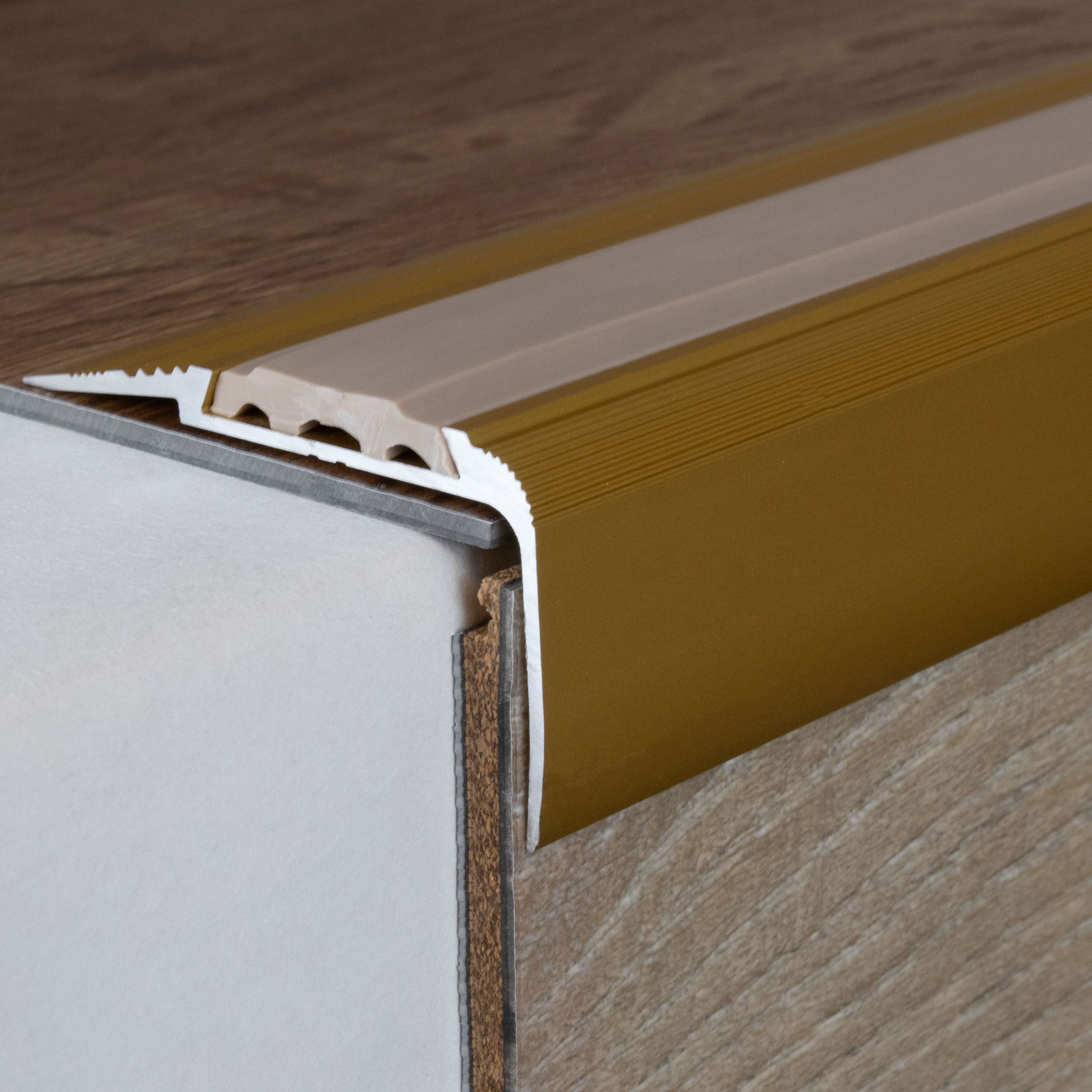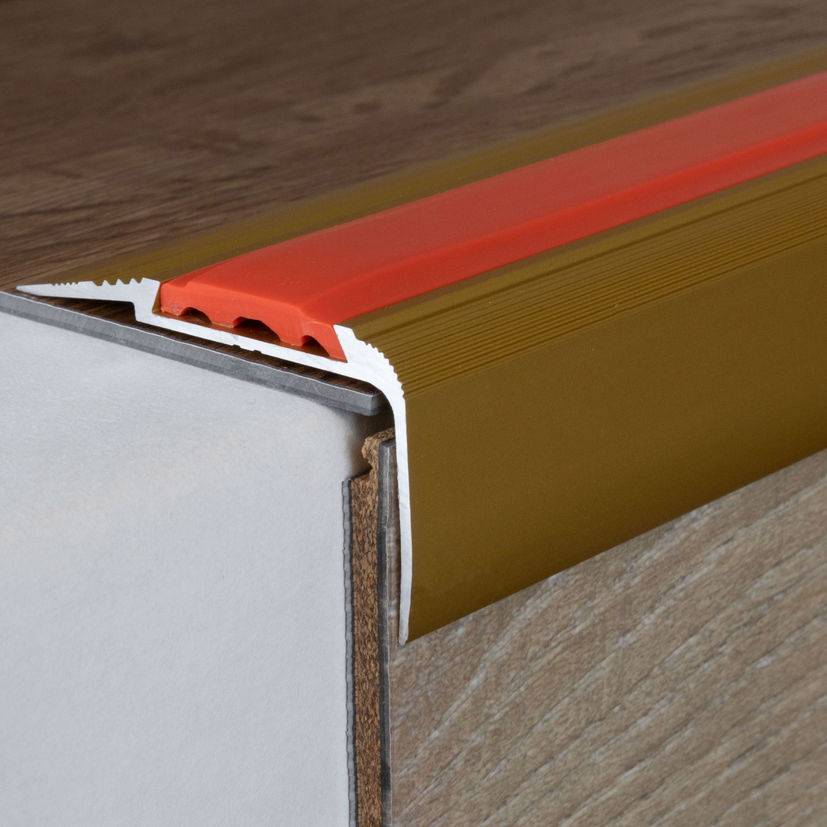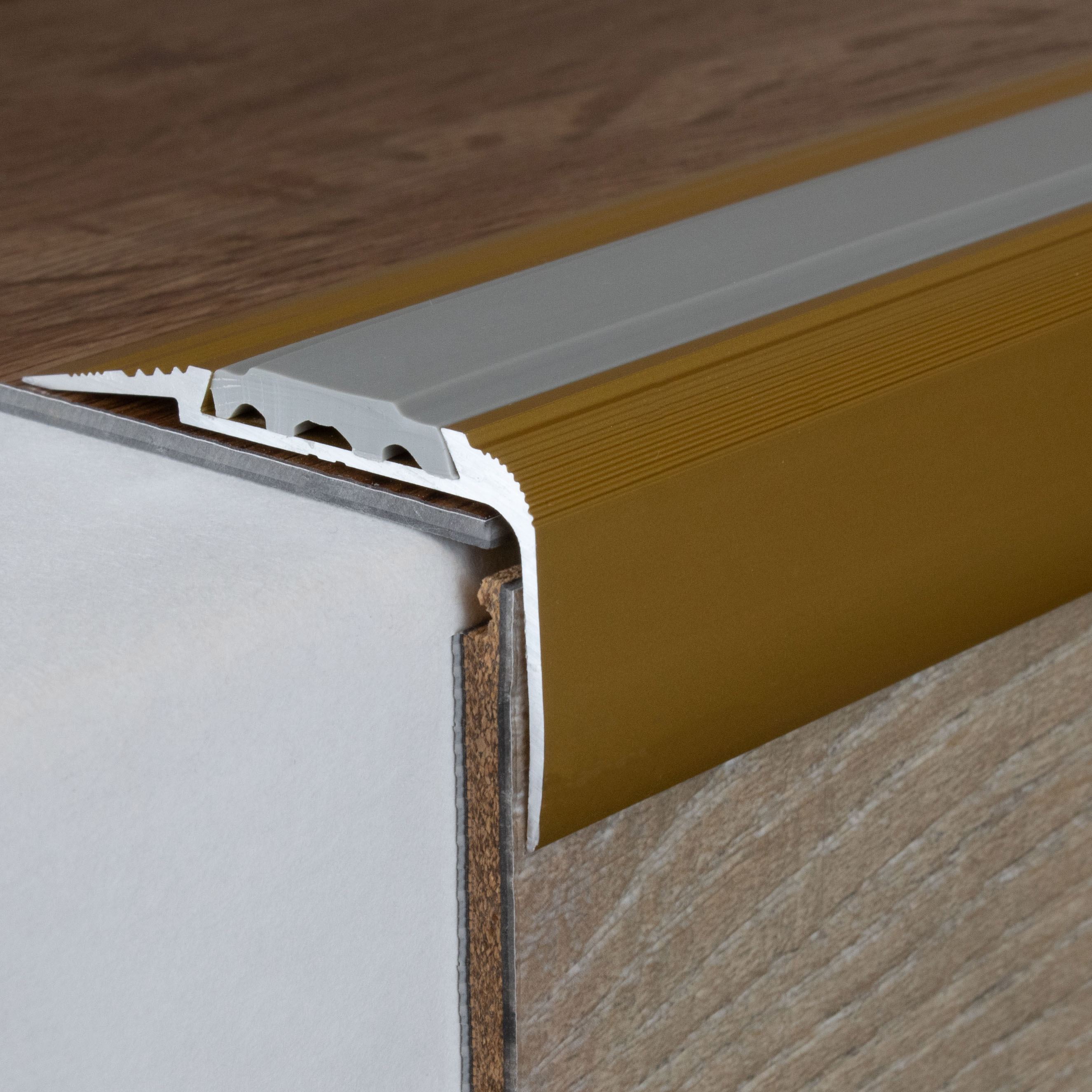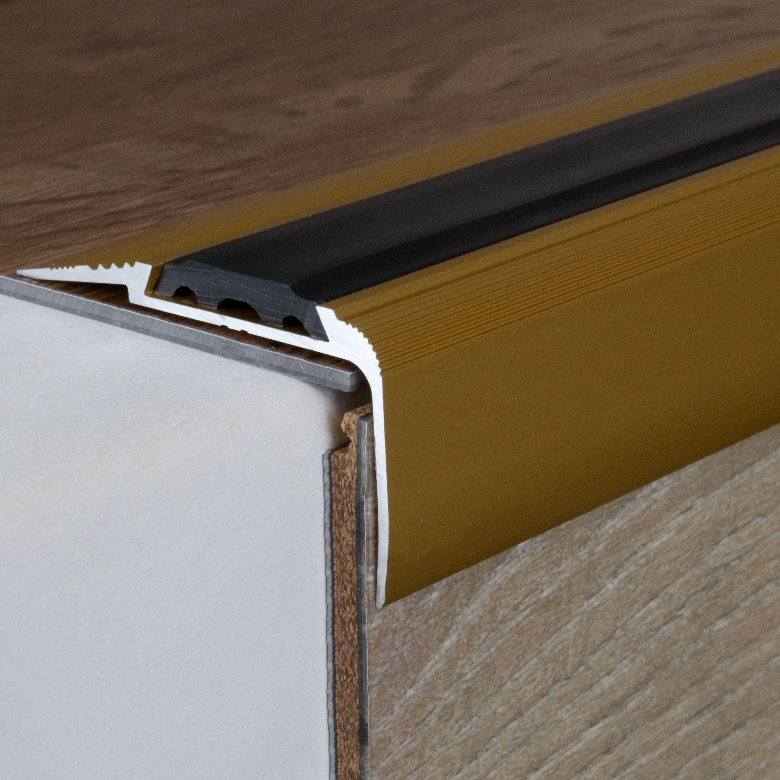 Remarque sur le contenu de la livraison : les profilés de nez de marche sont livrés SANS garniture. Tu peux commander les inserts en PVC correspondants sous l'onglet "Accessoires".