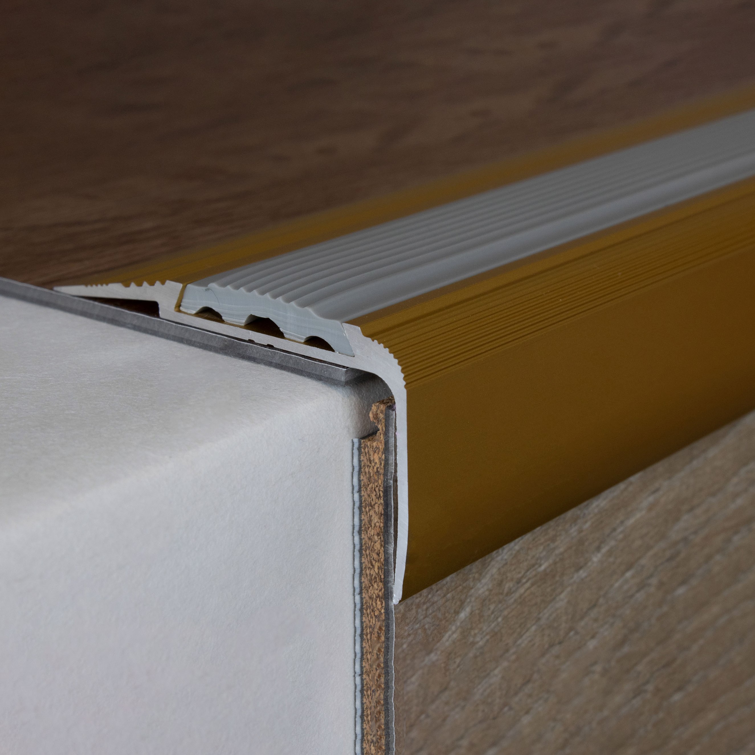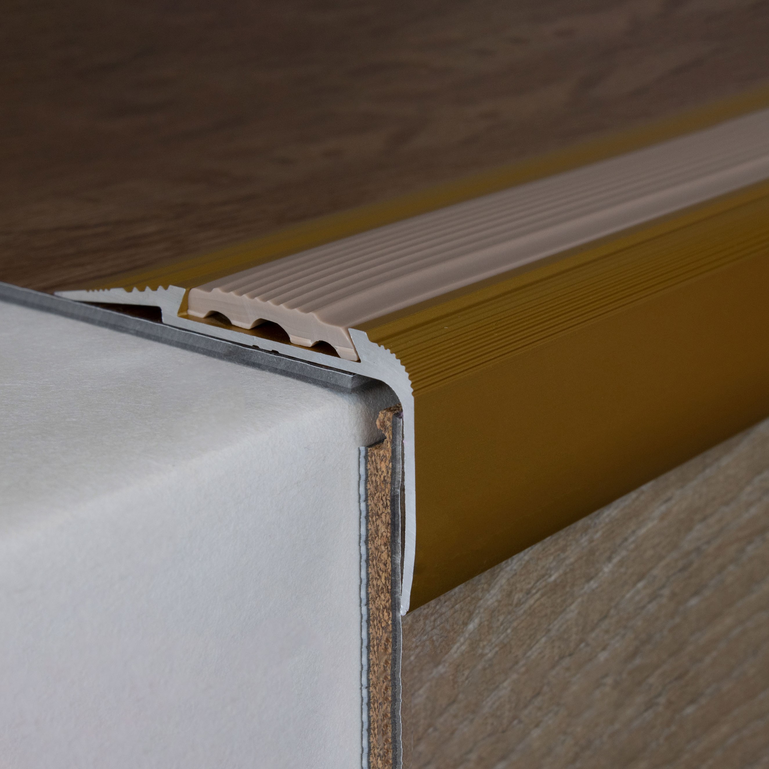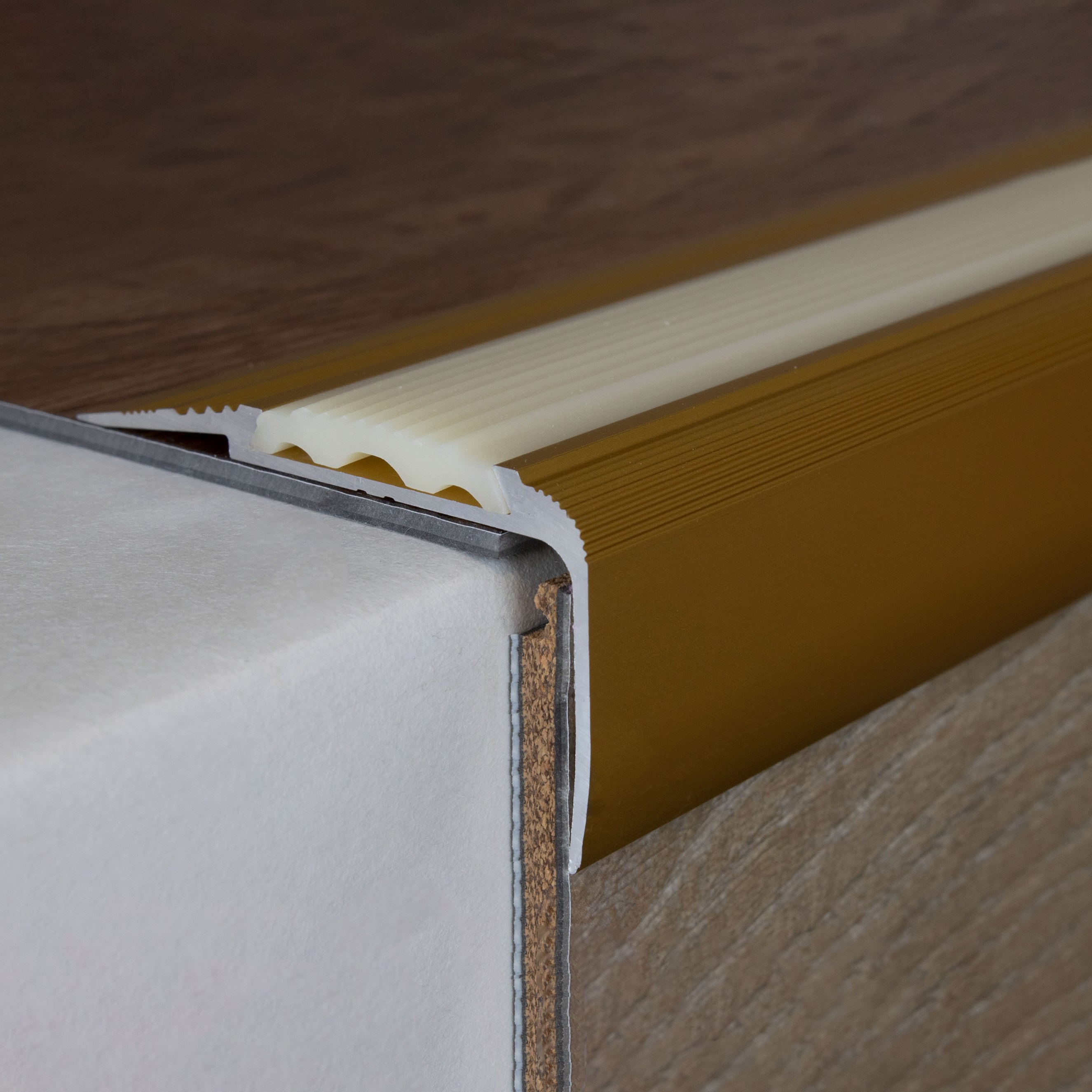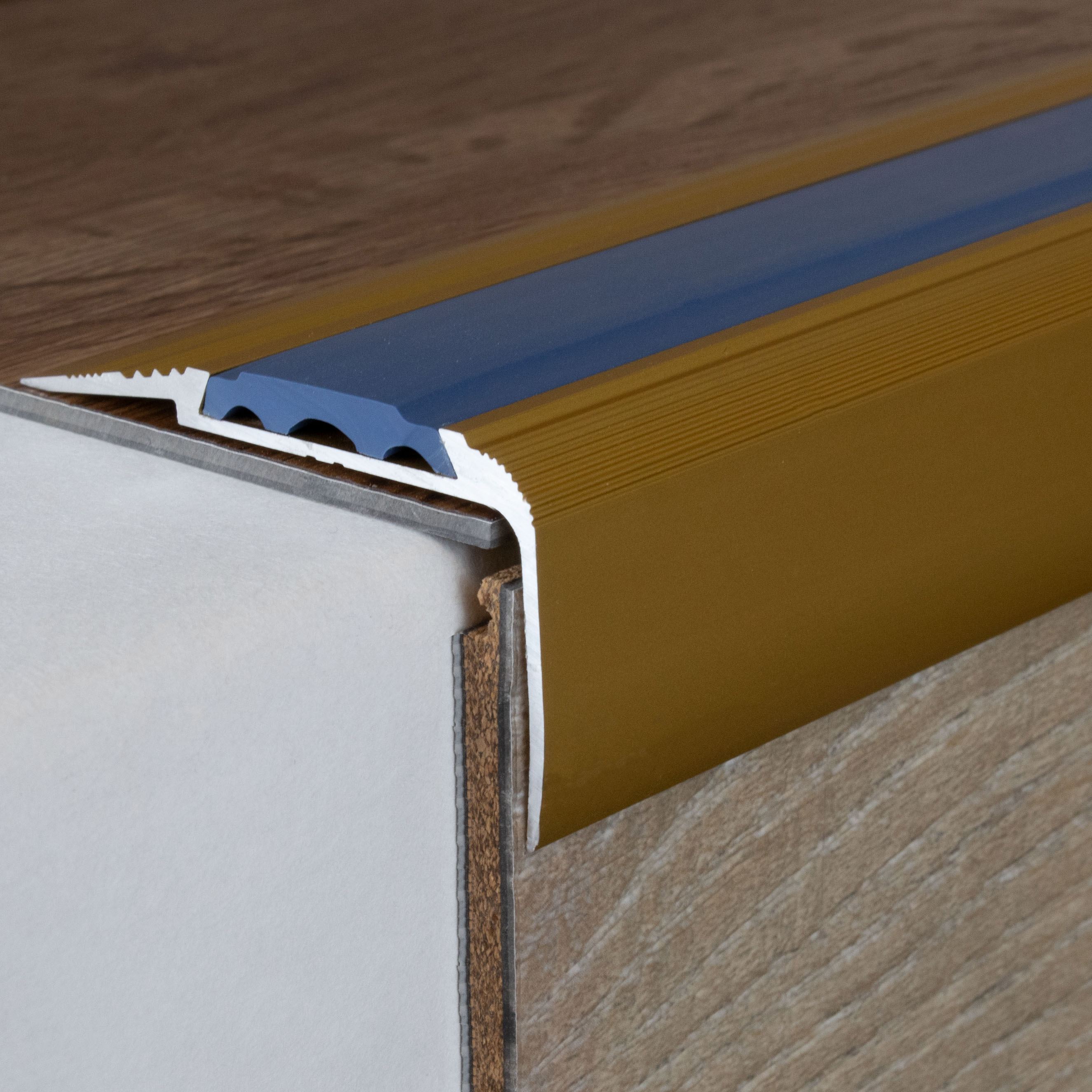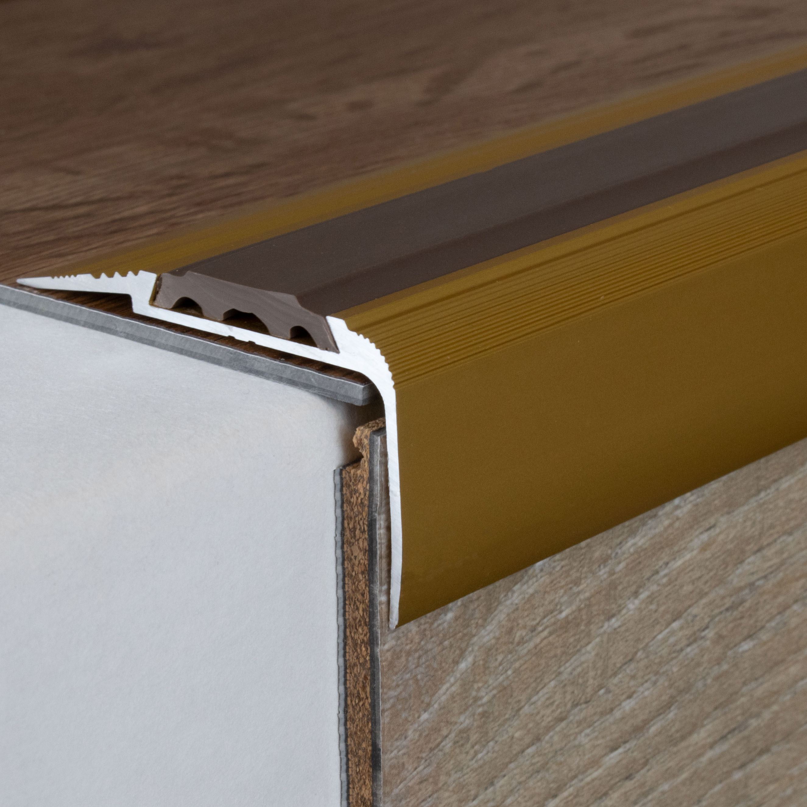 Remarque sur le contenu de la livraison : les profilés de nez de marche sont livrés SANS garniture. Tu peux commander les inserts en PVC correspondants sous l'onglet "Accessoires".