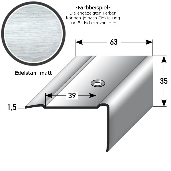 Nez de marche | largeur: 63 mm | hauteurn 25 - 45 mm | inox mat |