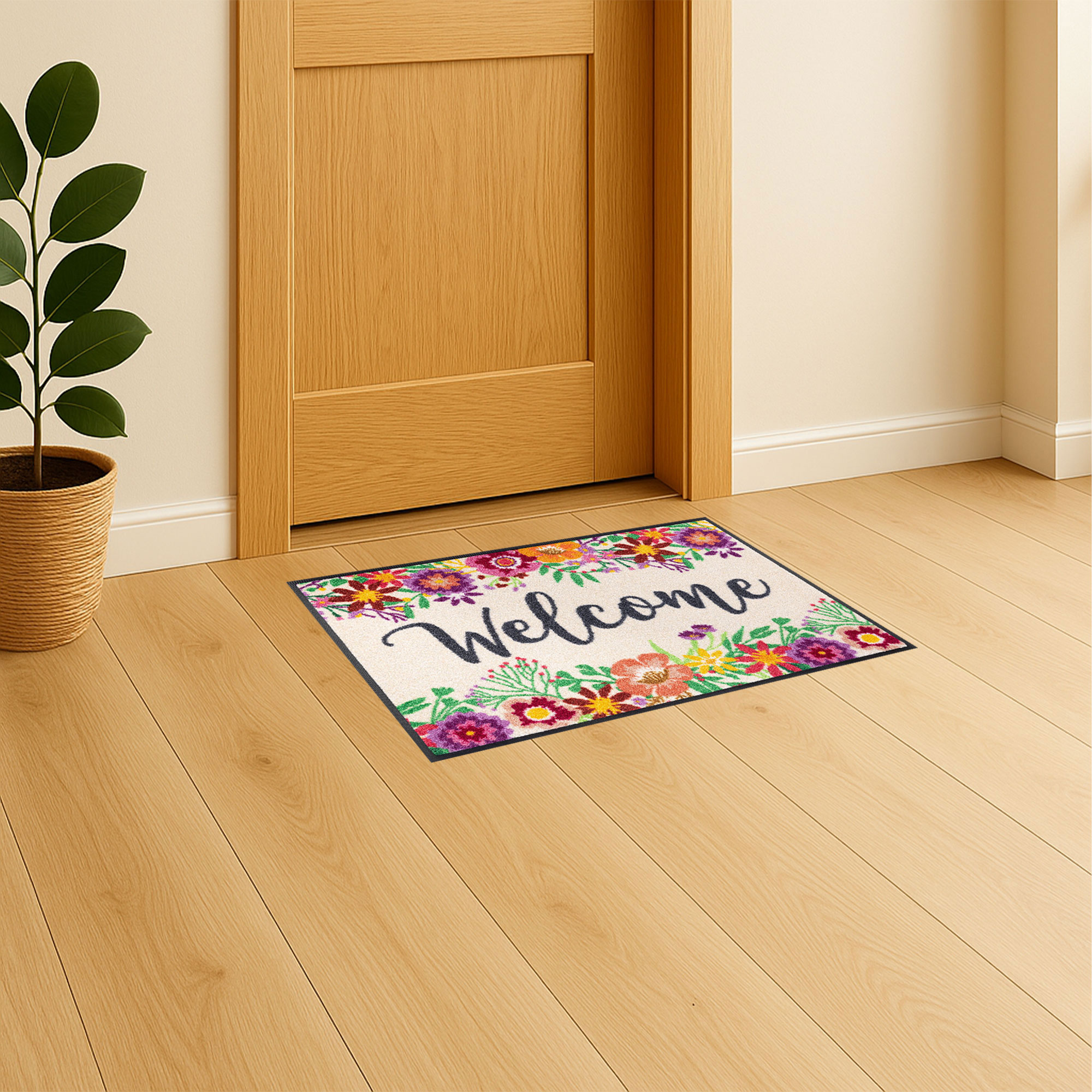 Paillasson Accueil floral 75 x 50 cm tapis de sol lavable Floornovo Trend Design