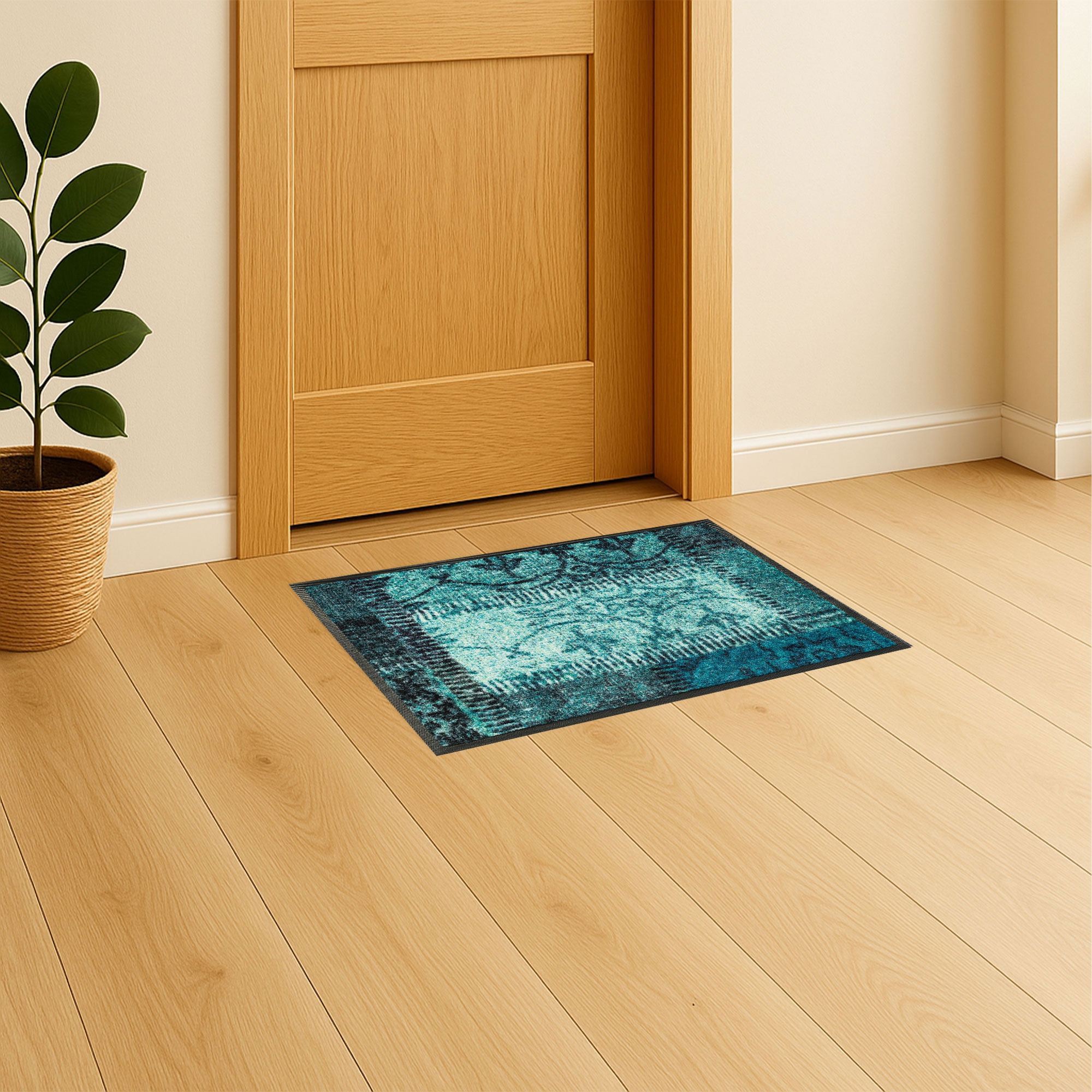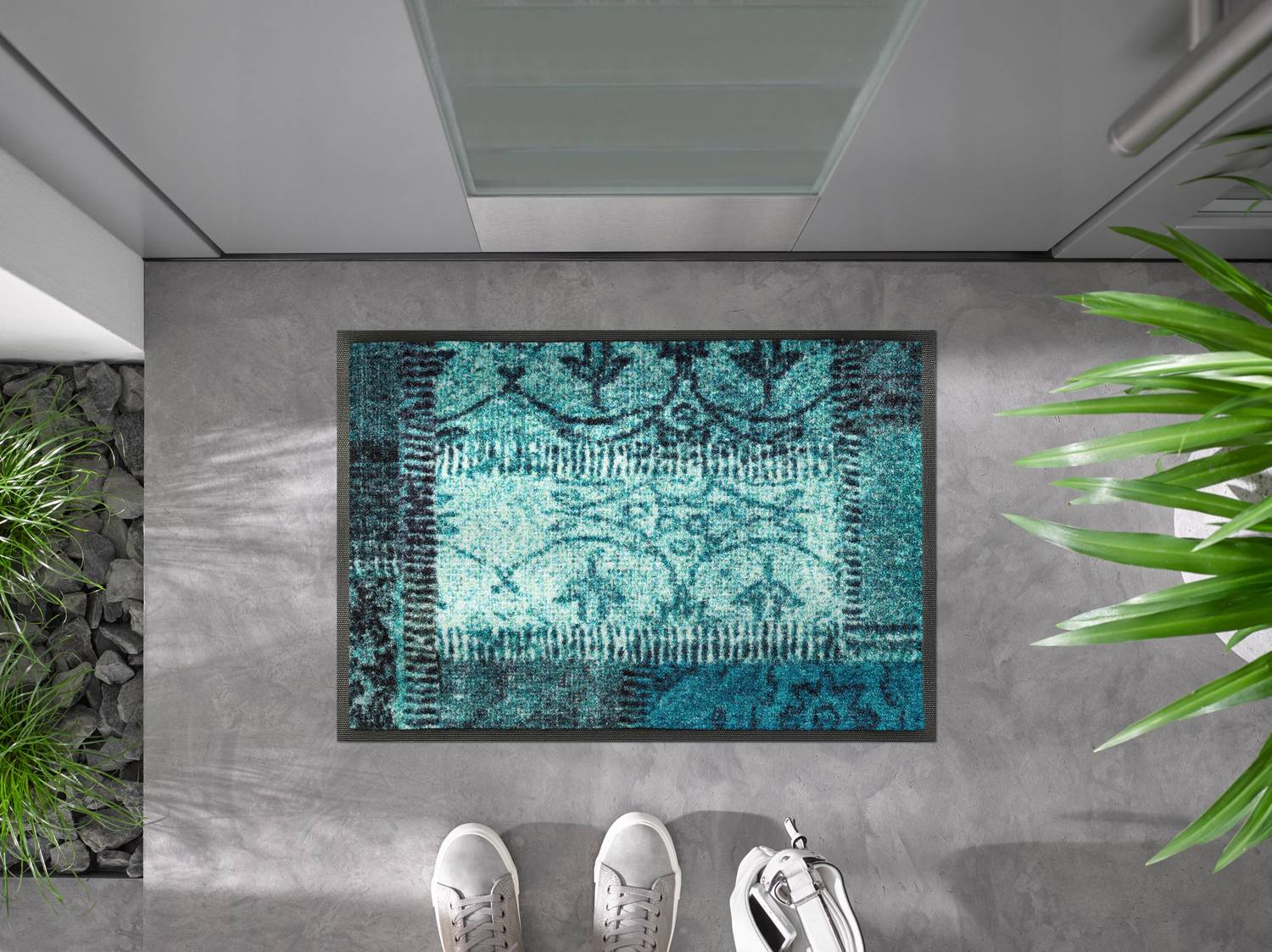 Paillasson Patchs vintage turquoise tapis de sol lavable Différentes tailles Floornovo Trend Design