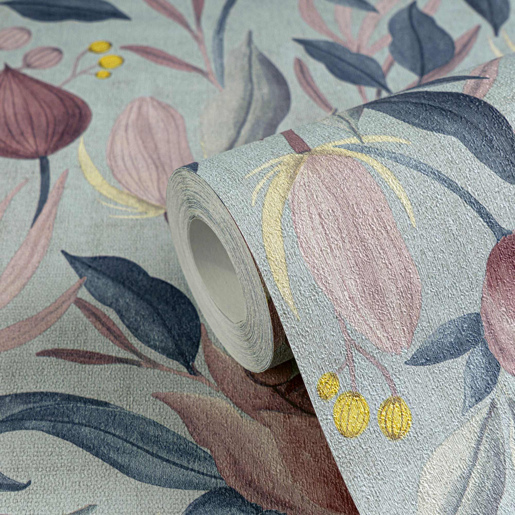 Papier peint intissé 790621 Bleu Floral Feuilles CosmoLiving by Cosmopolitan A.S. Creation