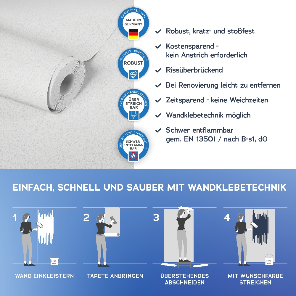 Dans le secteur du papier peint plus de 6.000 papiers peints et frises différents sont fabriqués dans toutes les qualités de matières et pour tous les domaines d'application. Ce n'est pas sans raison que les papiers peints de la marque A.S. Création profitent d'une grande notoriété et d'une grande popularité.