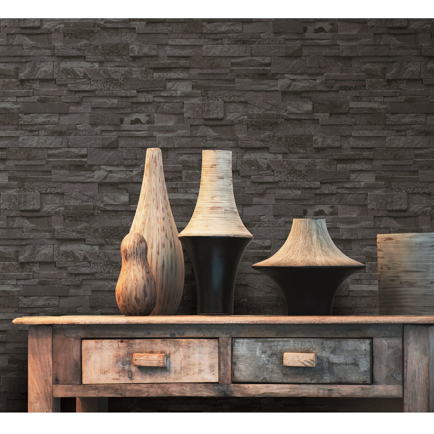 Erismann | Bestseller | 02363-40 | Papier peint intissé | Pierre | 0.53 x 10.05 m | Noir