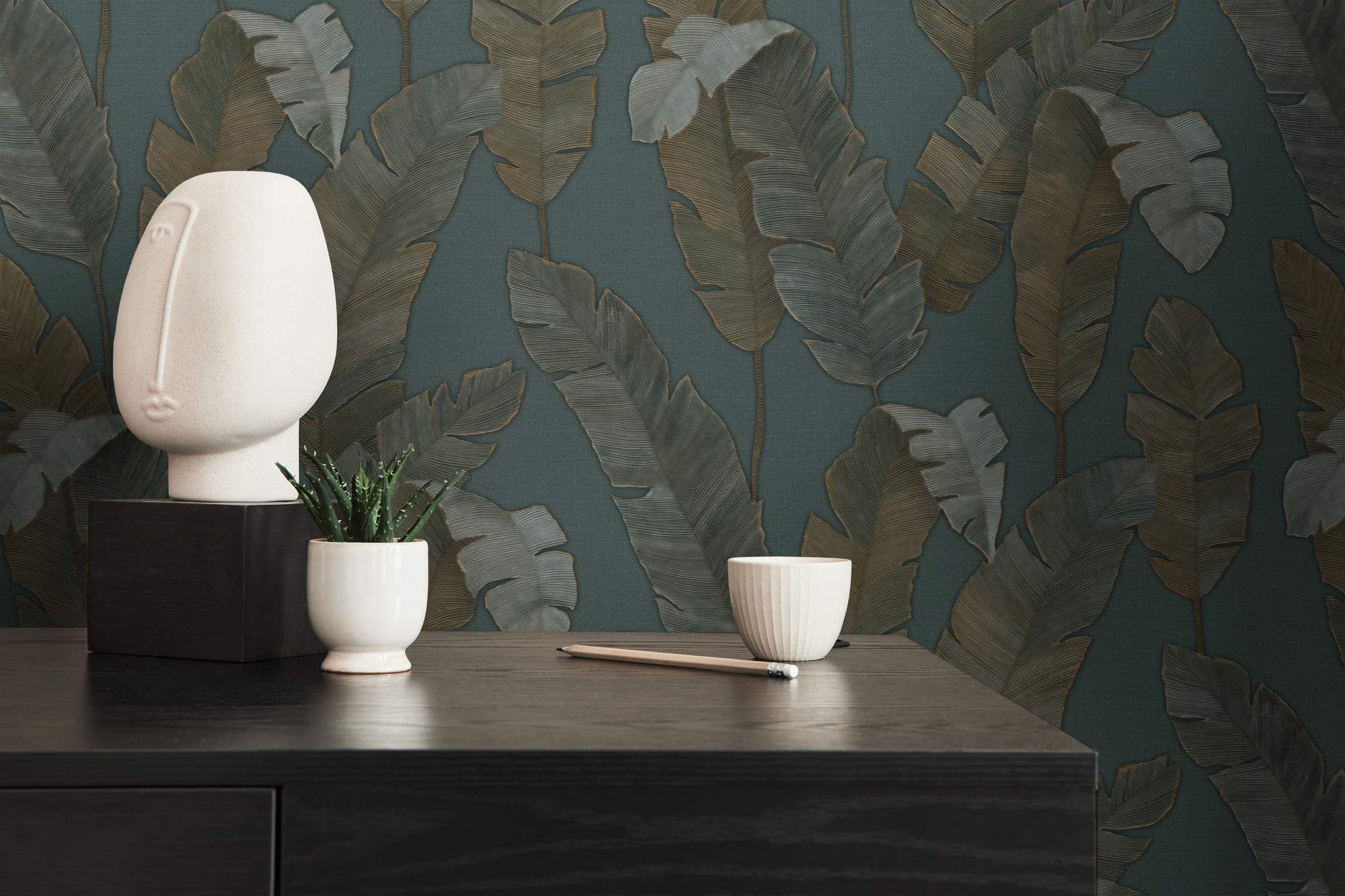 A.S. Creation | Travel Styles | 392183 | Papier peint intissé | Arbres et feuilles | 10.05 x 0.53 m | Pétrole