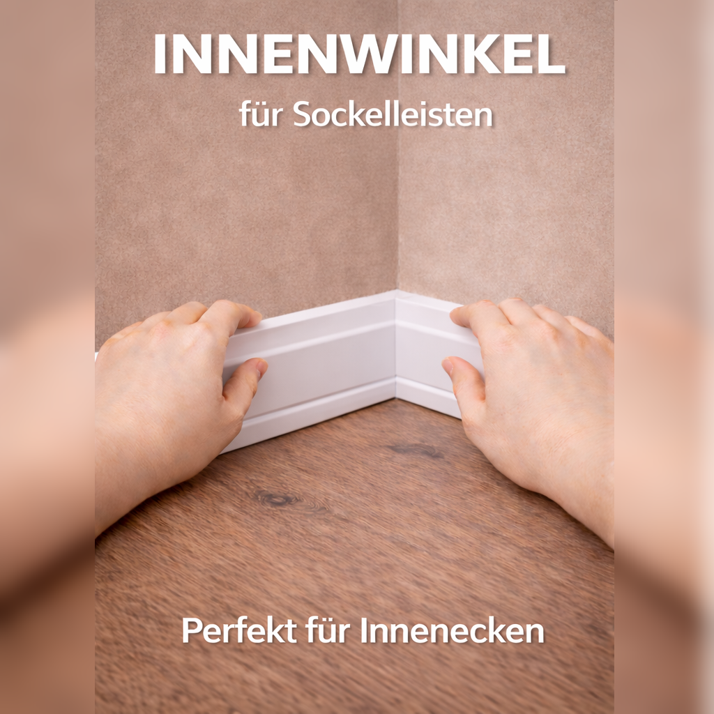 L'installation des angles intérieurs est extrêmement simple. L'élément d'angle doit d'abord être coupé en deux. Ensuite, les deux éléments d'angle se montent facilement par vissage, collage ou à l'aide de clips de montage en fonction des exigences du support et de la plinthe. Il est important que le support soit plan et propre. Les joints peuvent ensuite être scellés à l'acrylique.