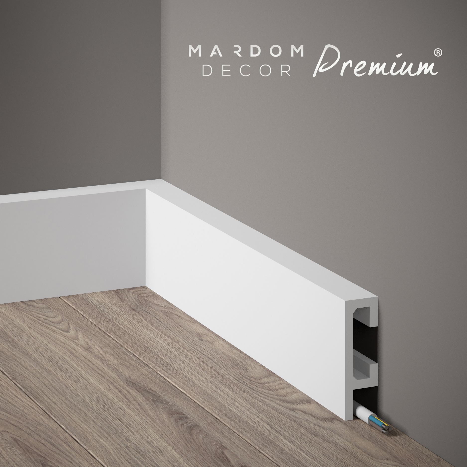 Mardom Plinthe électrique en polymère QL019P Polyforce 25 x 80 x 2000 mm Blanc Laqué Premium Satin