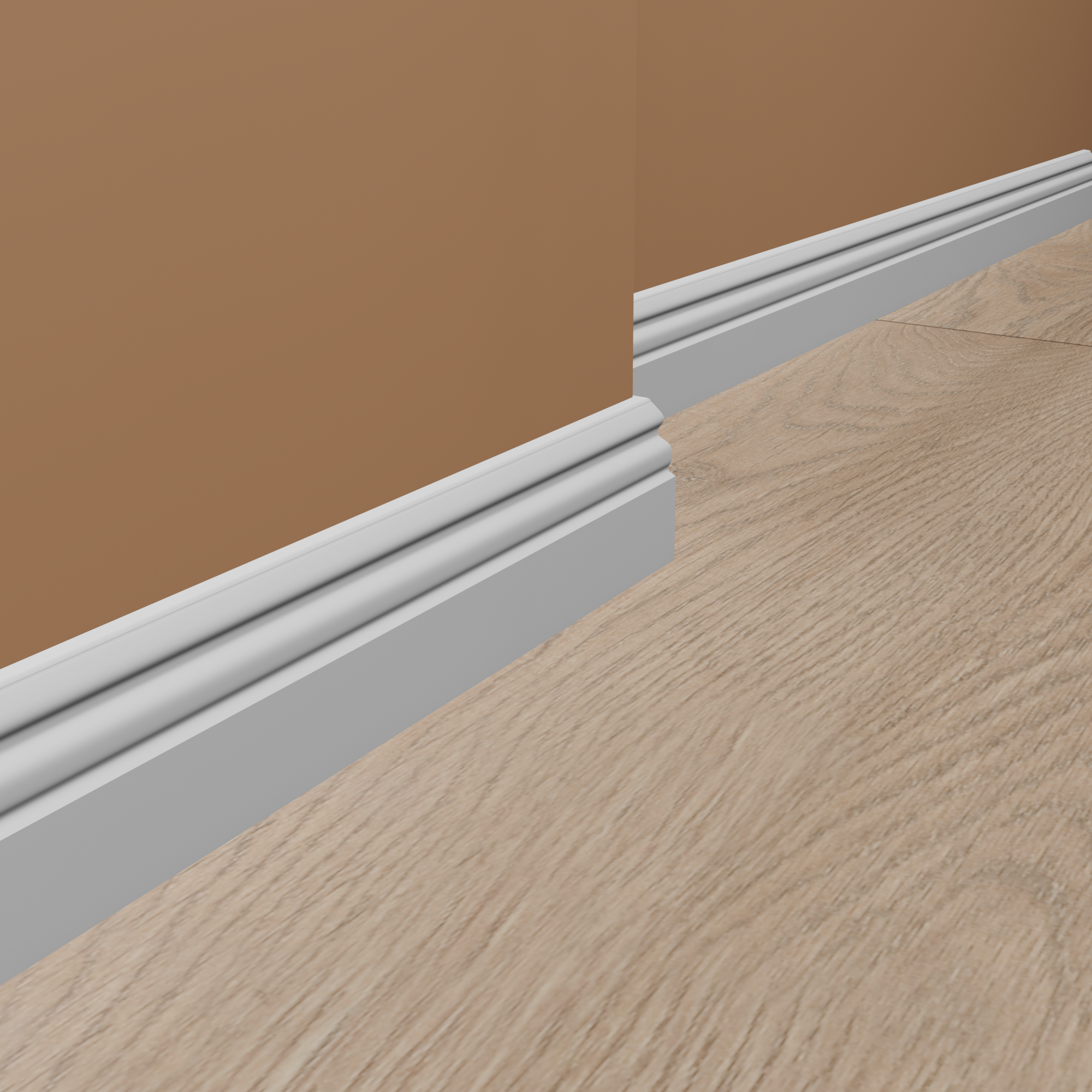 - COULEUR : Blanc. Grâce à son aspect sobre et moderne, cette couleur s'intègre harmonieusement à tous les styles d'intérieur, que vous ayez des sols foncés ou clairs, des murs blancs ou colorés. DESIGN ATTRAYANT : Classique, élégant et intemporel. Cette plinthe moulurée au design élégant ne se démode jamais et attire toujours le regard.