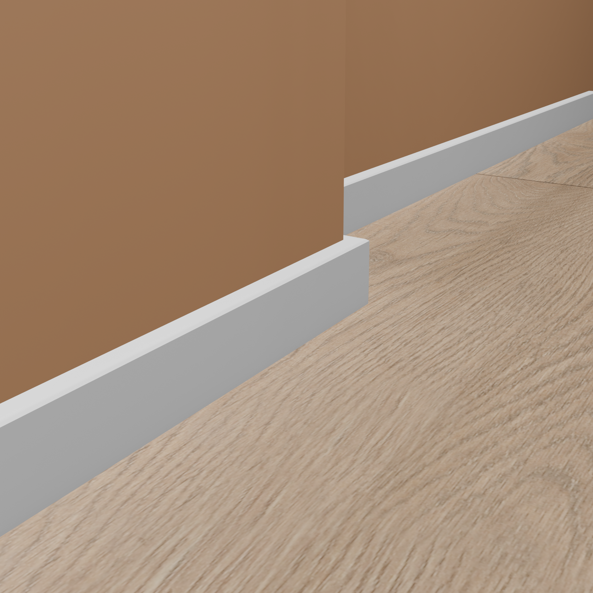 - Élégance classique: Les plinthes au profil carré sont élégantes et simples. Elles s’adaptent à chaque pièce et grâce à leur forme carrée elles sont faciles à dépoussiérer.