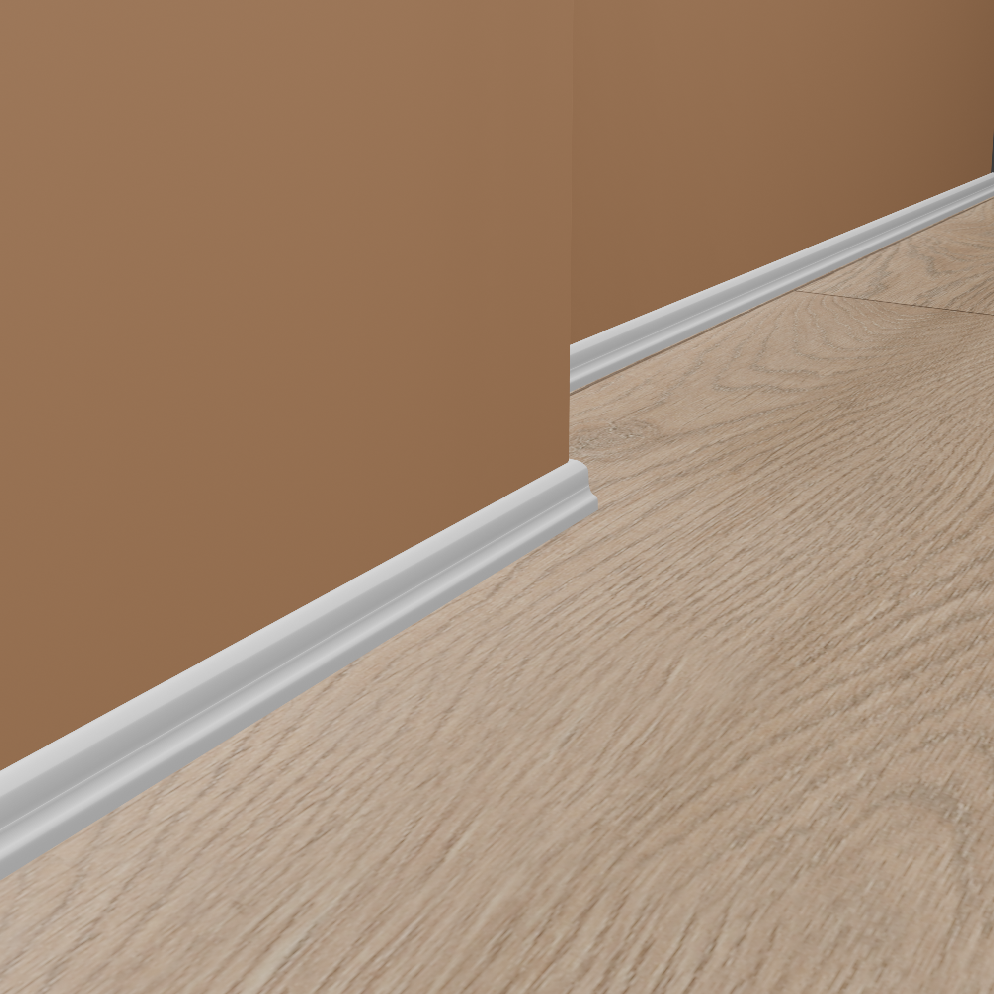 - SURFACE : Filmée avec une feuille décorative lisse de haute qualité qui protège la plinthe des influences extérieures grâce à sa résistance.