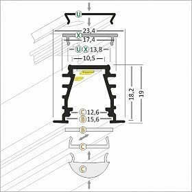 Taille: Le profil en aluminium LED avec les dimensions 23,4 x 18,2 x 2000 mm convient aux rayures LED avec une largeur maximale de 14,4 mm