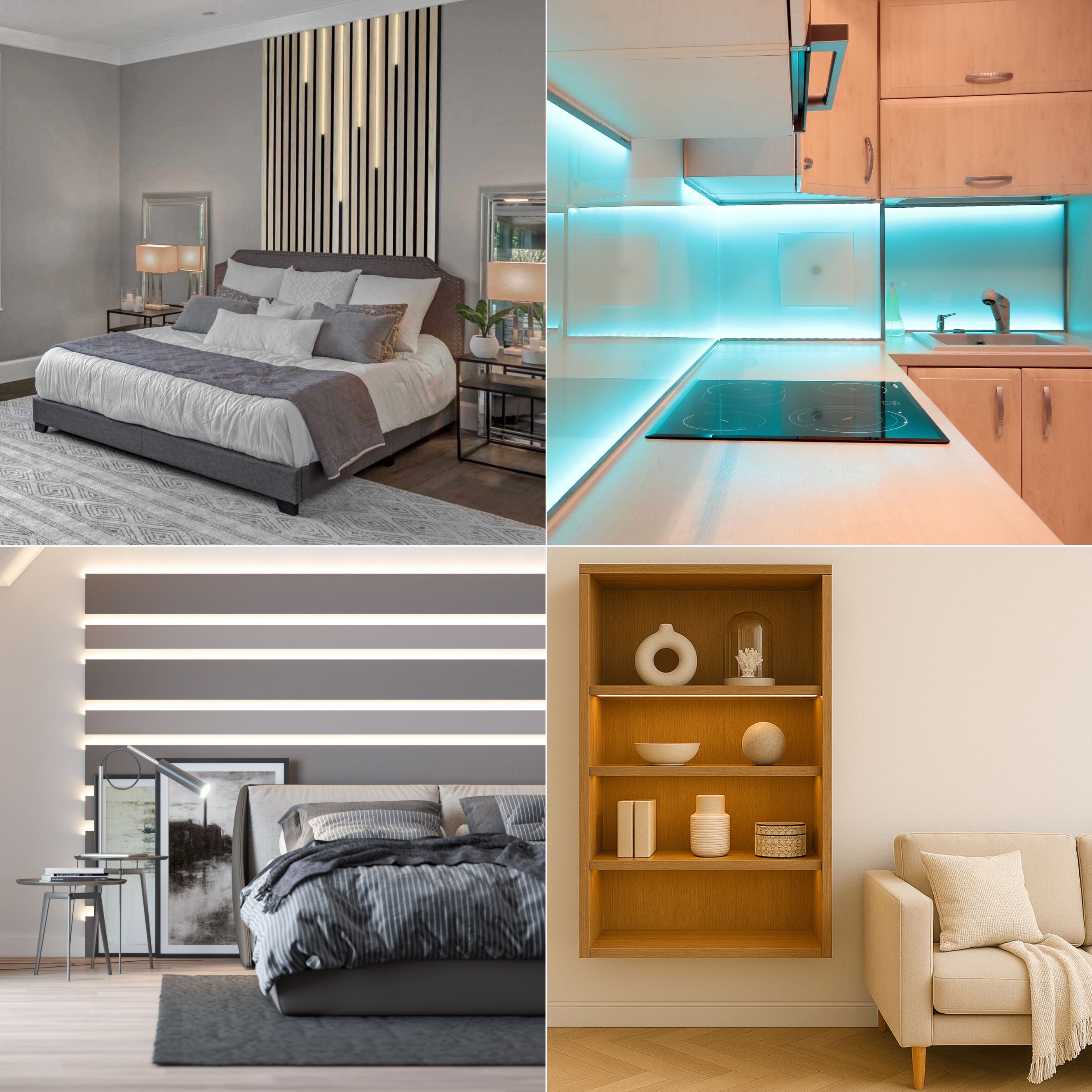 Nos rails en aluminium sont caractérisés par un design subtil et sont extrêmement polyvalents. Que ce soit dans le salon, les salles de bains, les cuisines, les garages, les caves, les bureaux ou d'autres pièces - vous offrez la solution parfaite pour vos besoins en termes d'éclairage indirect. Les bandes LED peuvent être intégrées de manière transparente et esthétiquement dans le design intérieur existant pour créer une atmosphère accueillante.