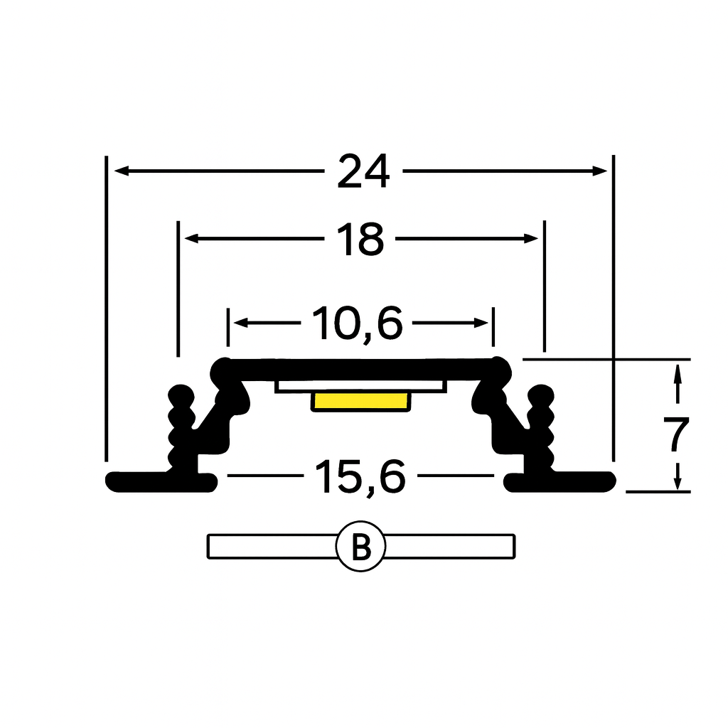 Taille: Le profil en aluminium LED avec les dimensions 24 x 7 x 2000 mm convient aux rayures LED avec un maximum de 10,6 mm