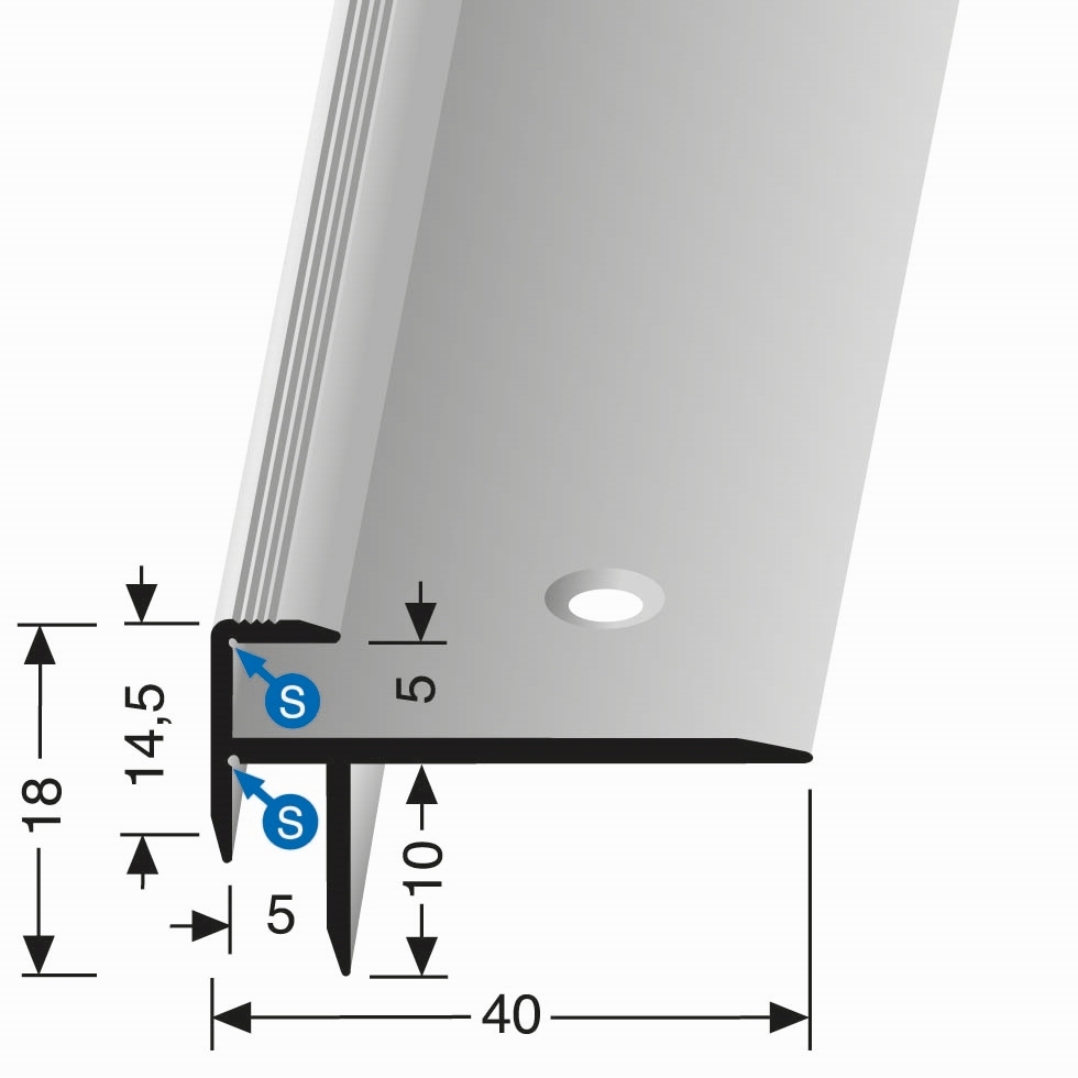 Profilé d'escalier 18 x 40 x 2500 mm Aluminium Cornière striée Argent Küberit