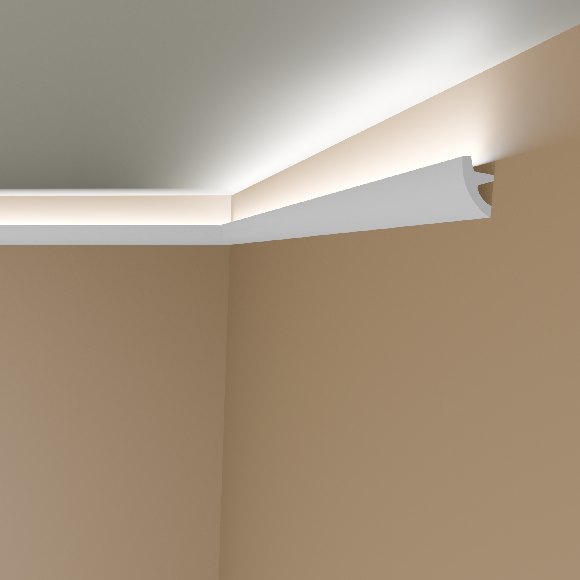 Nos corniches au design moderne et intemporel s'intègrent dans n'importe quel aménagement intérieur. Le design du profil assure une harmonie parfaite entre les murs et le plafond. Vous pouvez insérer des bandes LED flexibles dans la rainure des corniches. L'éclairage LED indirect crée une atmosphère chaleureuse et accueillante. Les accessoires LED assortis sont également disponibles dans notre boutique.
