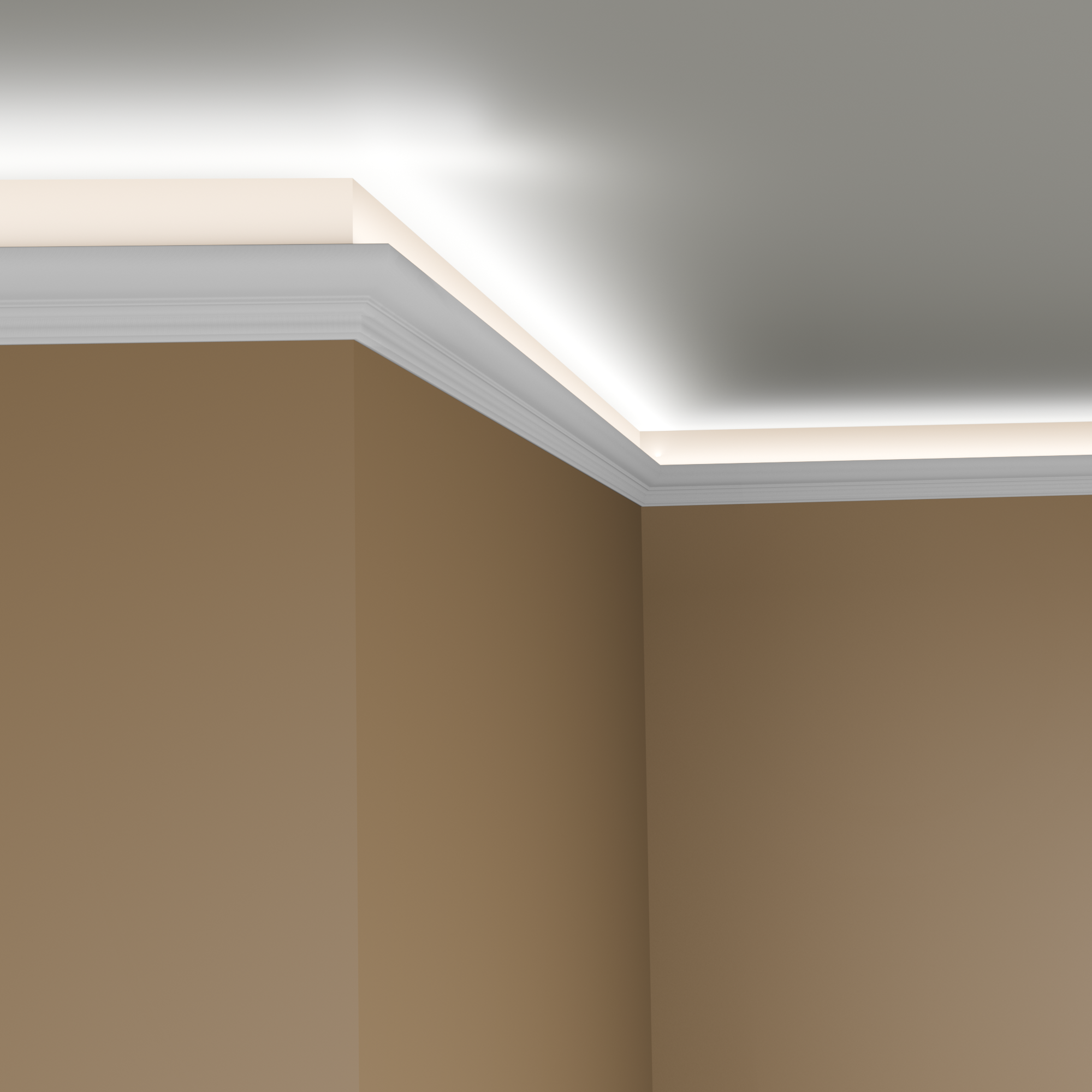 Nos corniches au design moderne et intemporel s'intègrent dans n'importe quel aménagement intérieur. Le design du profil assure une harmonie parfaite entre les murs et le plafond. Vous pouvez insérer des bandes LED flexibles dans la rainure des corniches. L'éclairage LED indirect crée une atmosphère chaleureuse et accueillante. Les accessoires LED assortis sont également disponibles dans notre boutique.