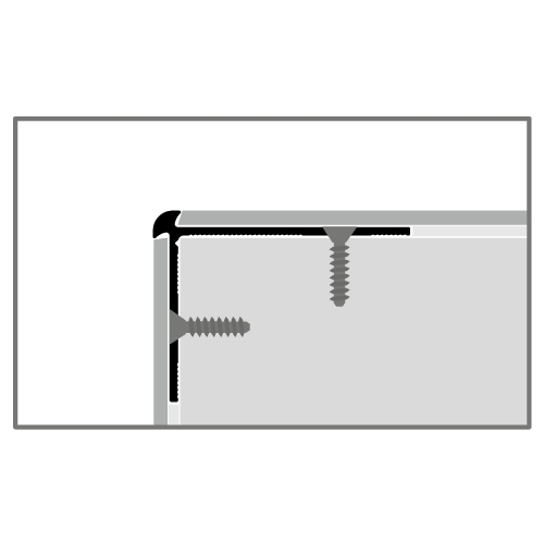 Dans les zones très fréquentées les profils de finition doivent être vissés ET collés à la fois. Voulez-vous augmenter la capacité de charge nous recommandons de remplir la cavité entre le profil de finition et le revêtement de sol.