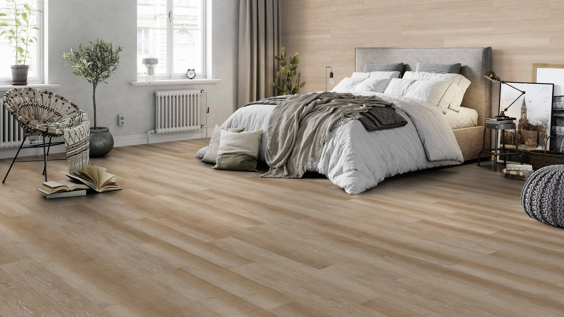 Ce revêtement de sol n'est pas seulement beau, il est aussi pratique. Grâce à l'isolation phonique intégrée IXPE, le bruit est réduit de 18 dB pendant le passage des personnes. Il est chaud sous le pied et confortable, et vous pouvez facilement le combiner avec un chauffage au sol pour créer une ambiance agréable dans chaque pièce.