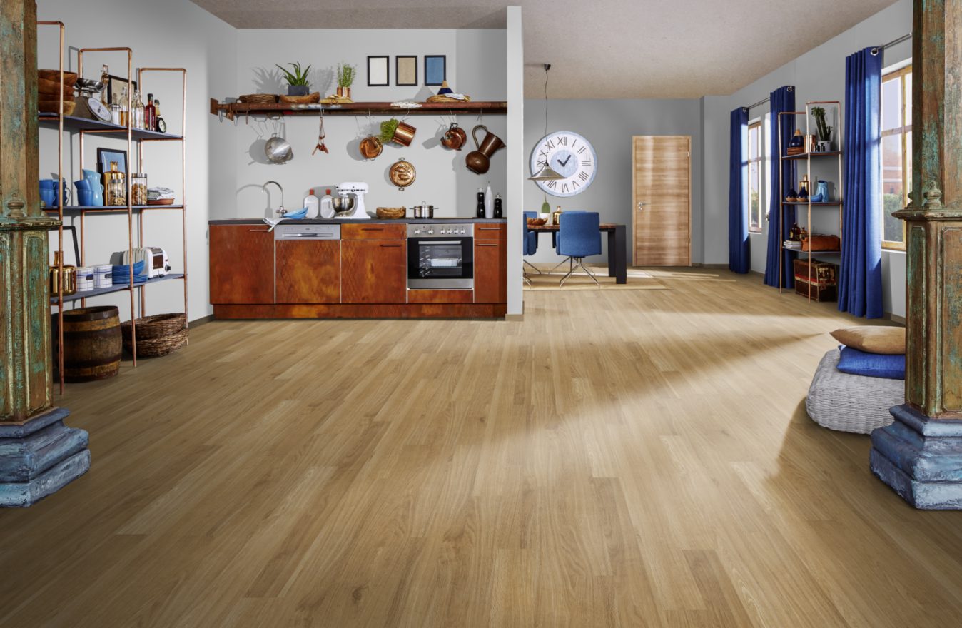 La collection de revêtement de sol design 330 avec une couche d'usure de 0,4 mm est le choix idéal pour chaque pièce de votre maison. Qu'il s'agisse du salon, de la chambre à coucher ou de la cuisine, ce revêtement de sol s'intègre parfaitement dans votre concept d'habitat. Il est également idéal pour les pièces telles que les bureaux ou les salles d'exposition, où il y a une légère utilisation commerciale.