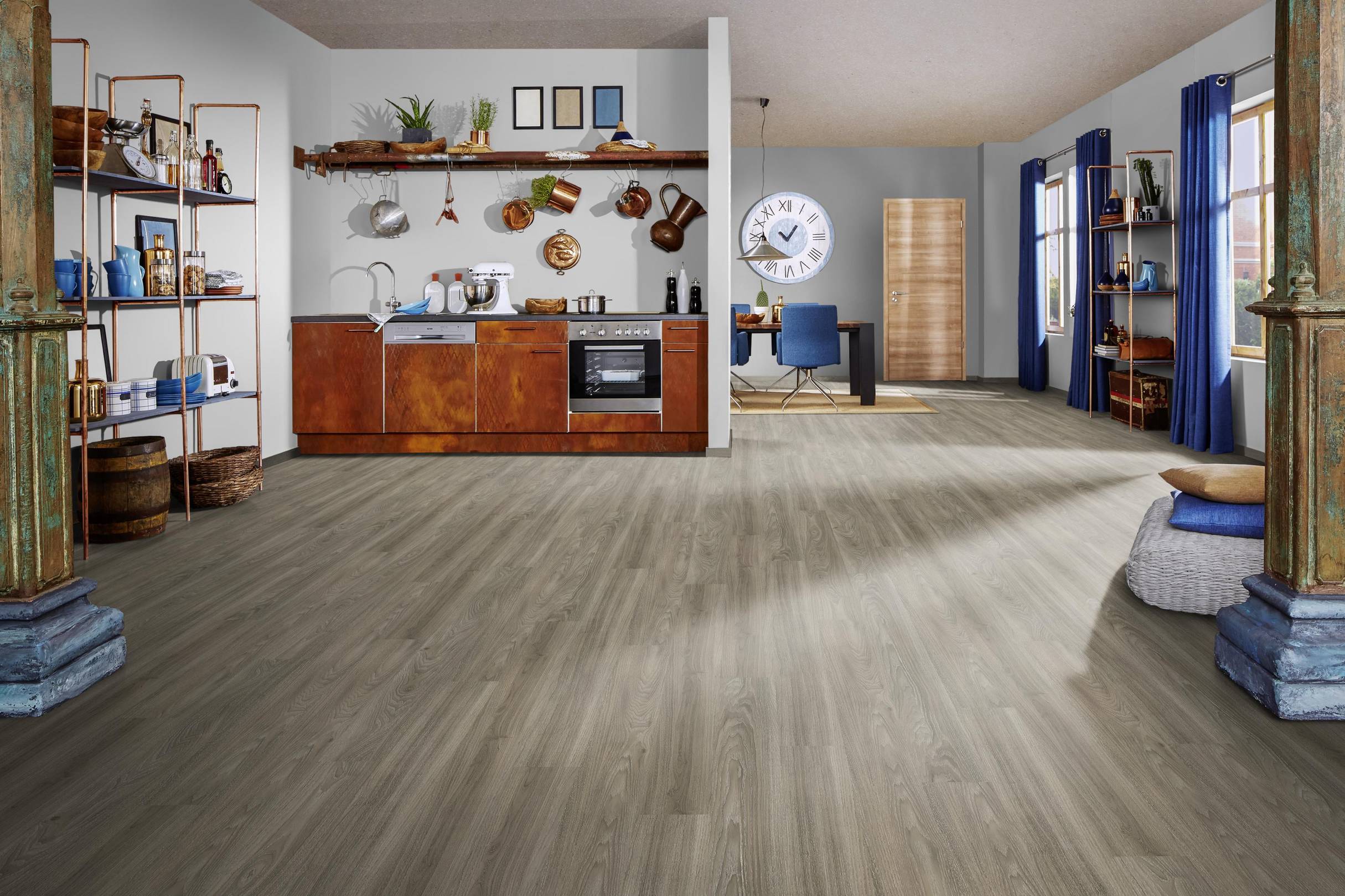 La collection de revêtement de sol design 330 avec une couche d'usure de 0,4 mm est le choix idéal pour chaque pièce de votre maison. Qu'il s'agisse du salon, de la chambre à coucher ou de la cuisine, ce revêtement de sol s'intègre parfaitement dans votre concept d'habitat. Il est également idéal pour les pièces telles que les bureaux ou les salles d'exposition, où il y a une légère utilisation commerciale.