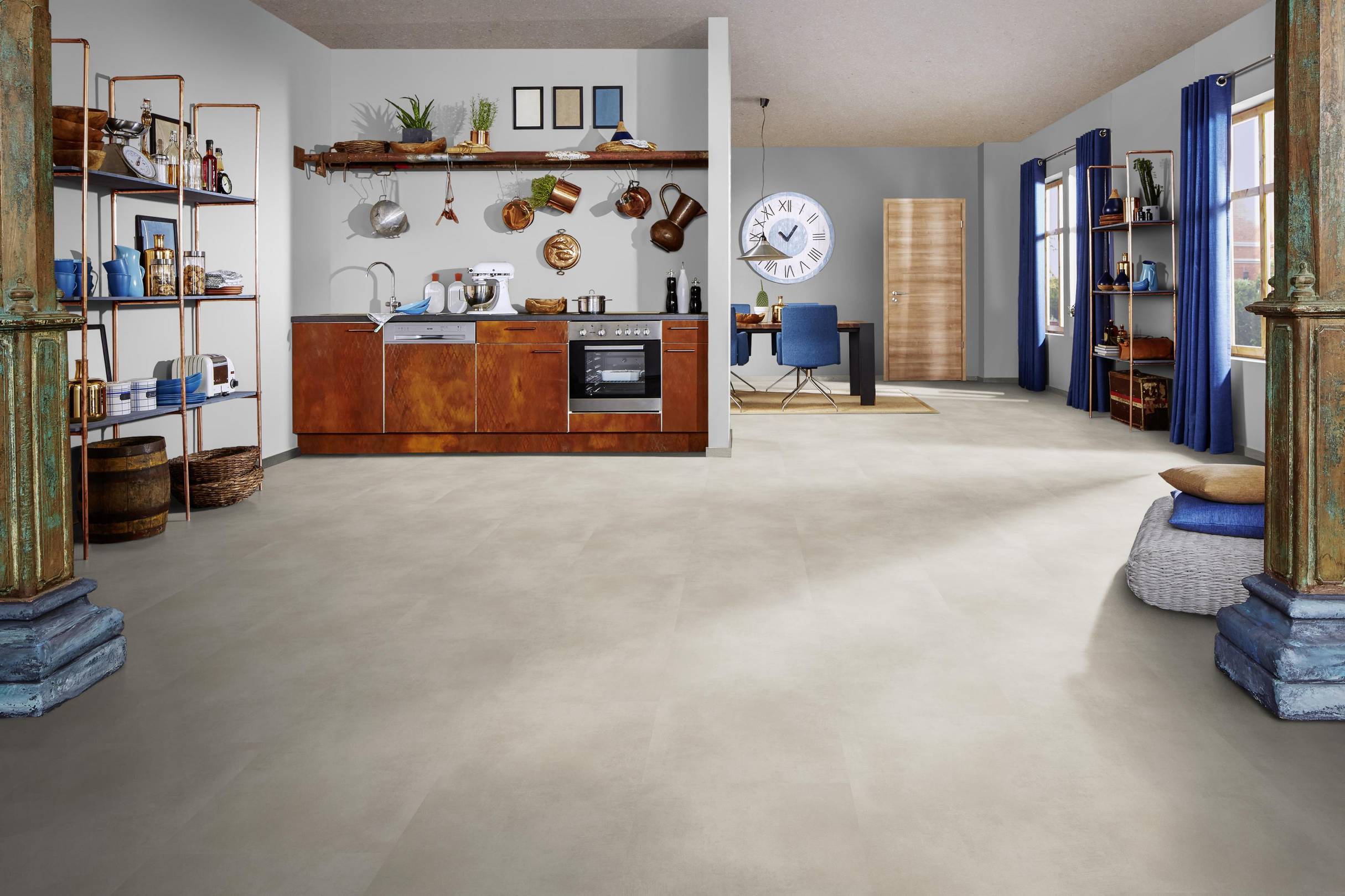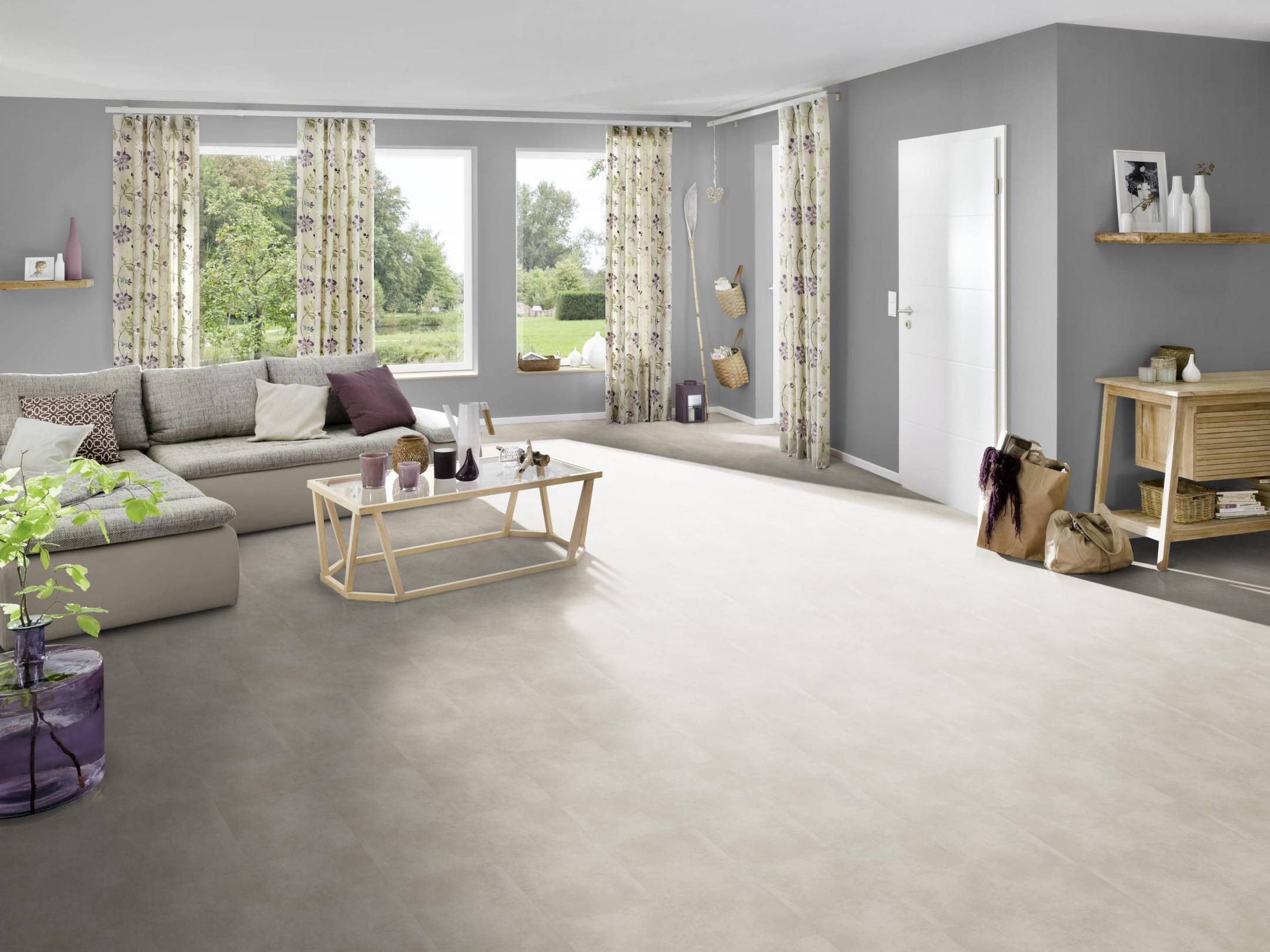Grâce à sa résistance à l'eau à 100%, ce revêtement de sol convient également aux pièces humides comme la salle de bain. La variété de superbes décors et d'aspects, dont l'aspect pierre et l'aspect bois, vous permet de choisir le sol à votre goût et de créer ainsi une agréable sensation de confort dans vos pièces.