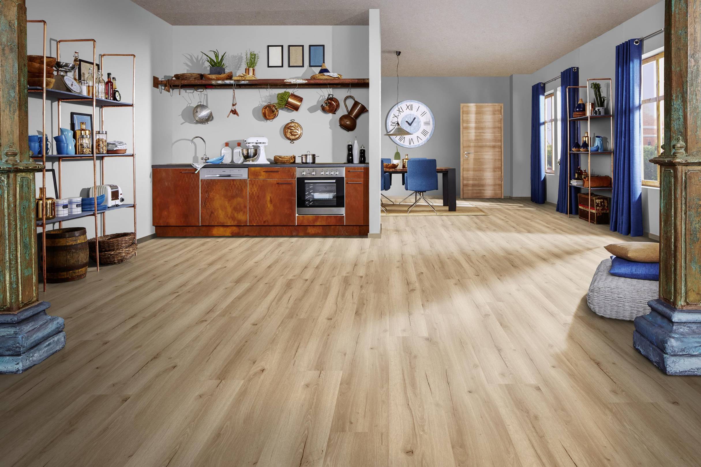 Le sol vinyle PVC présente des lames standard de 7 mm d'épaisseur, dispose d'une classe d'usage 23/32/42 et fonctionne avec une formation de joints sans chanfrein. Le sol vinyle à clipser crée un aspect authentique grâce à sa structure en bois. DESIGN 555 Wooden Styles n'est pas seulement un revêtement de sol, mais aussi une expression de l'habitat stylé. Sa couleur brune confère à chaque pièce une atmosphère chaleureuse et accueillante.