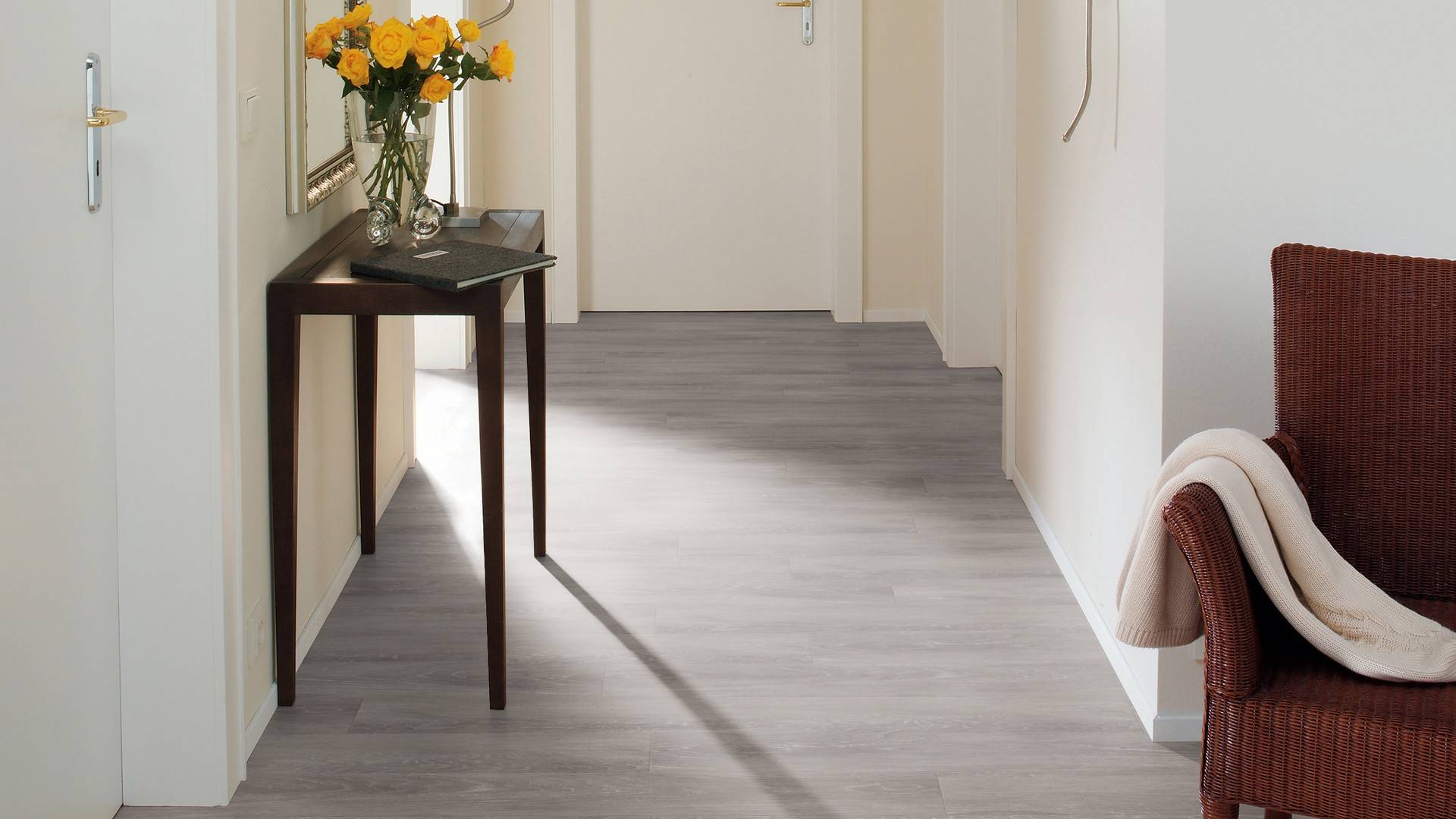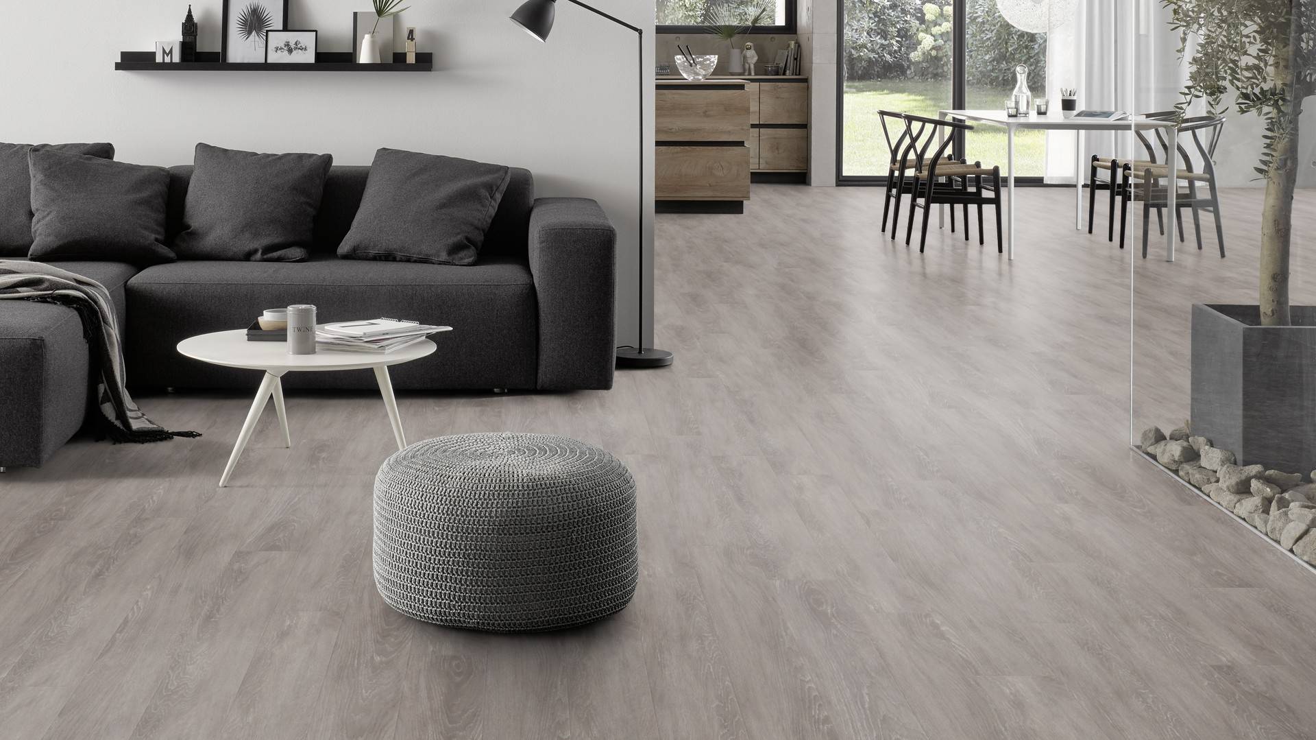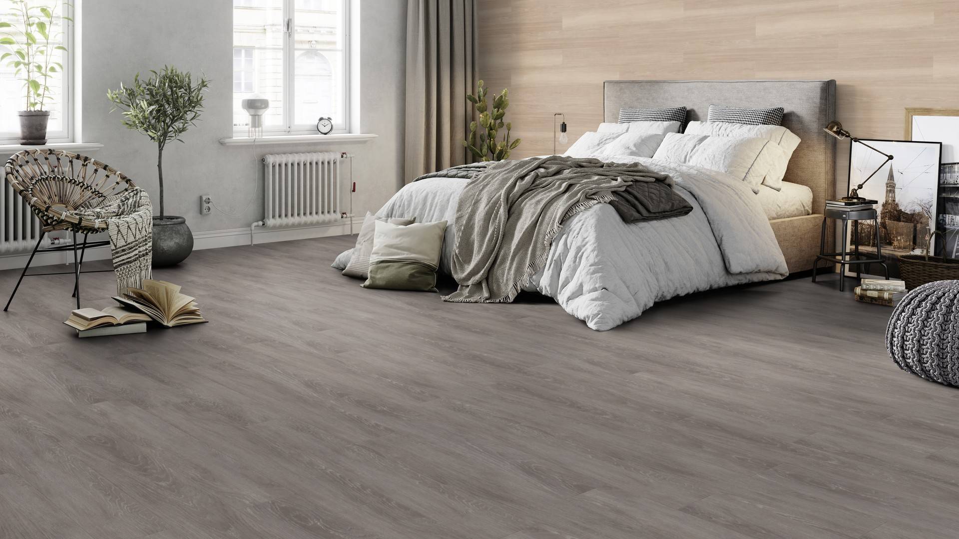 Le revêtement de sol en Grey Ash convainc par son imitation parfaite des sols en bois naturels. Les fines veines confèrent au sol un aspect authentique et de qualité qui rappelle les sols en chêne. Grâce à ses couleurs variées, il s'adapte à tous les styles d'intérieur et crée une atmosphère harmonieuse dans votre maison.