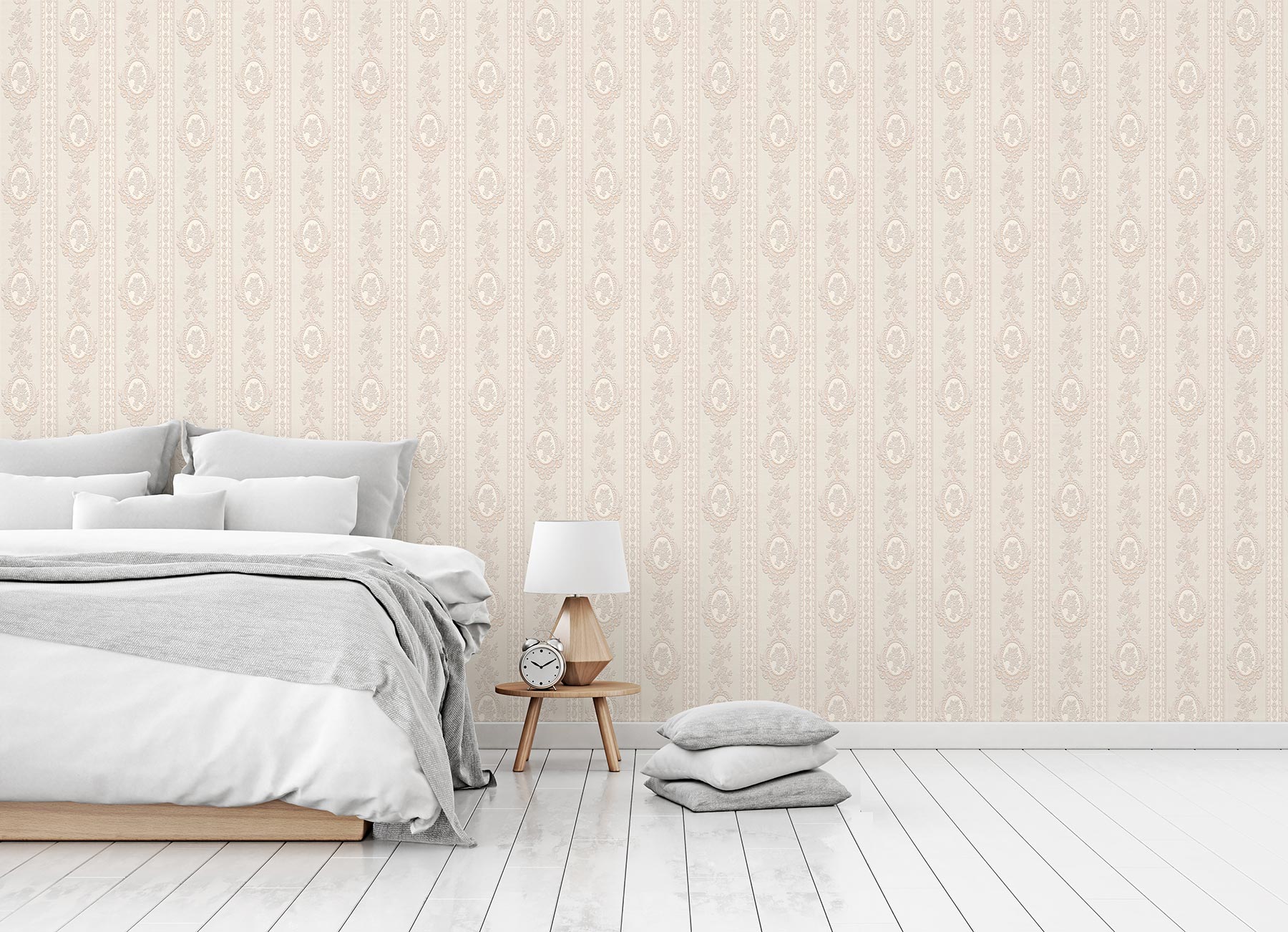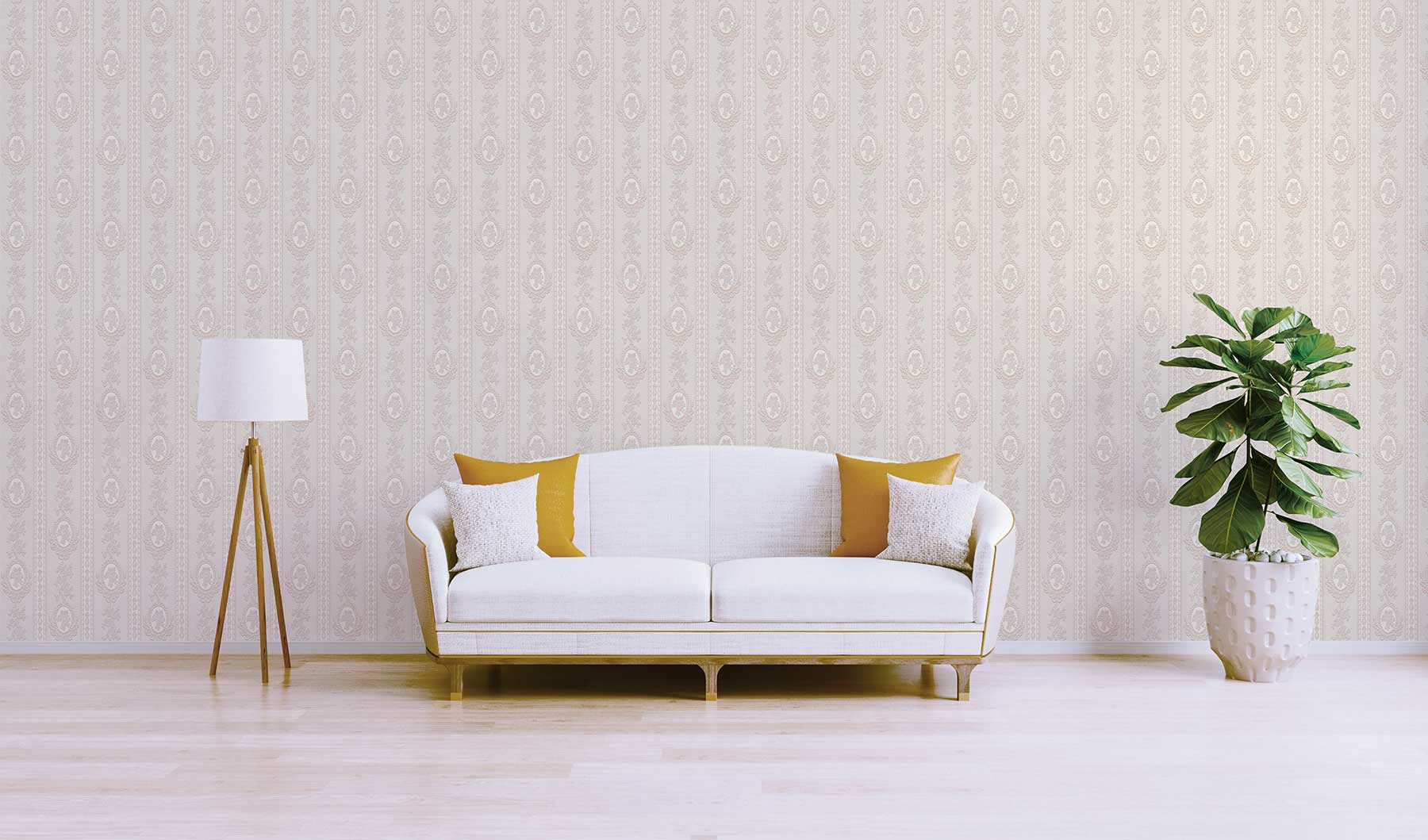 Tapete Barock Giulia M1-No.1998 | Papiertapete | Creme | Klassik | Streifen | Ornament
